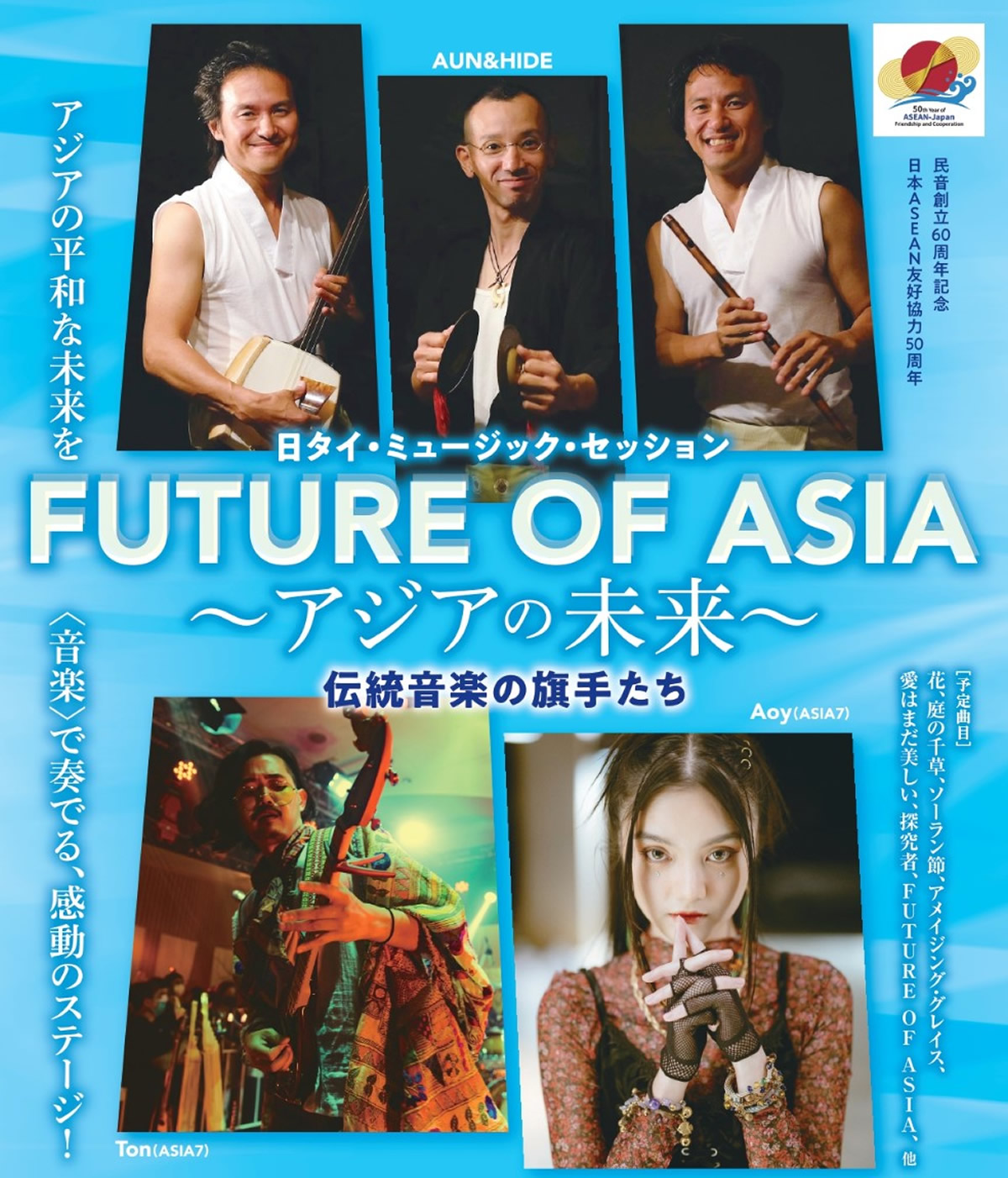 「FUTURE OF ASIA~アジアの未来~ 伝統音楽の旗手たち」では、和楽器ユニット「AUN & HIDE」とタイのフュージョンバンド「ASIA7」がスペシャルユニットを結成し、パフォーマンスを繰り広げます。