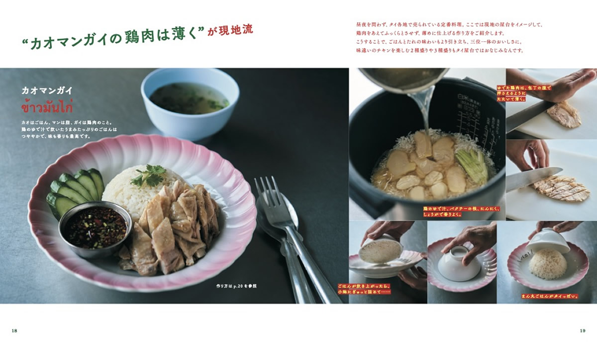 おなじみのカオマンガイは、鶏肉を叩いて薄くする現地流レシピを紹介。