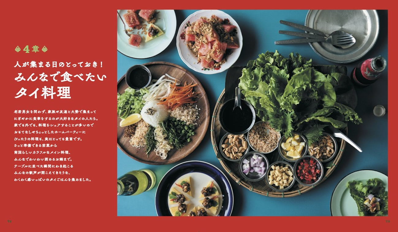 そんな“タイ料理好きの日本人”が作りやすいよう、現地の味わいはそのままに、日本人好みの調味料や味つけ、台所事情を知ったうえで開発されたレシピが本書です。料理はスタンダードなメニューから通好みのものまでを網羅し“本物のタイ料理を手軽に味わいたい”という人に、ピッタリです。