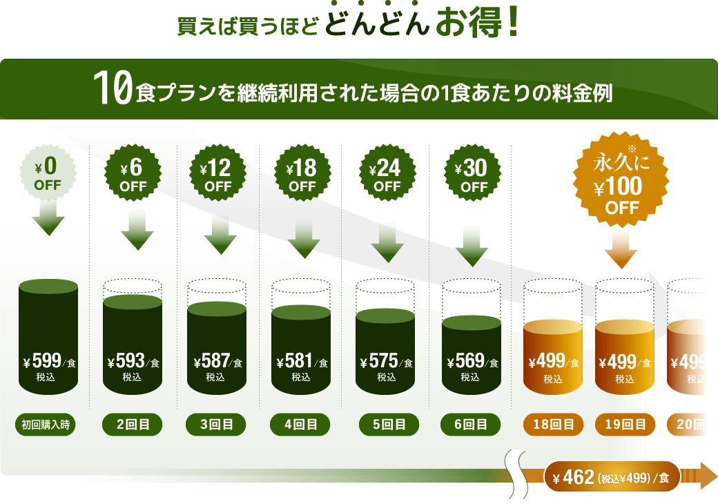 nosh clubとは、ユーザーの累計ご購入数によって割引になる制度です。最安¥462(税込¥499)で購入できnoshをご利用の間は永久※に適応されます。また「スキップ」や「停止」は何回行ってもnoshランクは保持されます。※退会または会員資格を喪失した場合を除く
