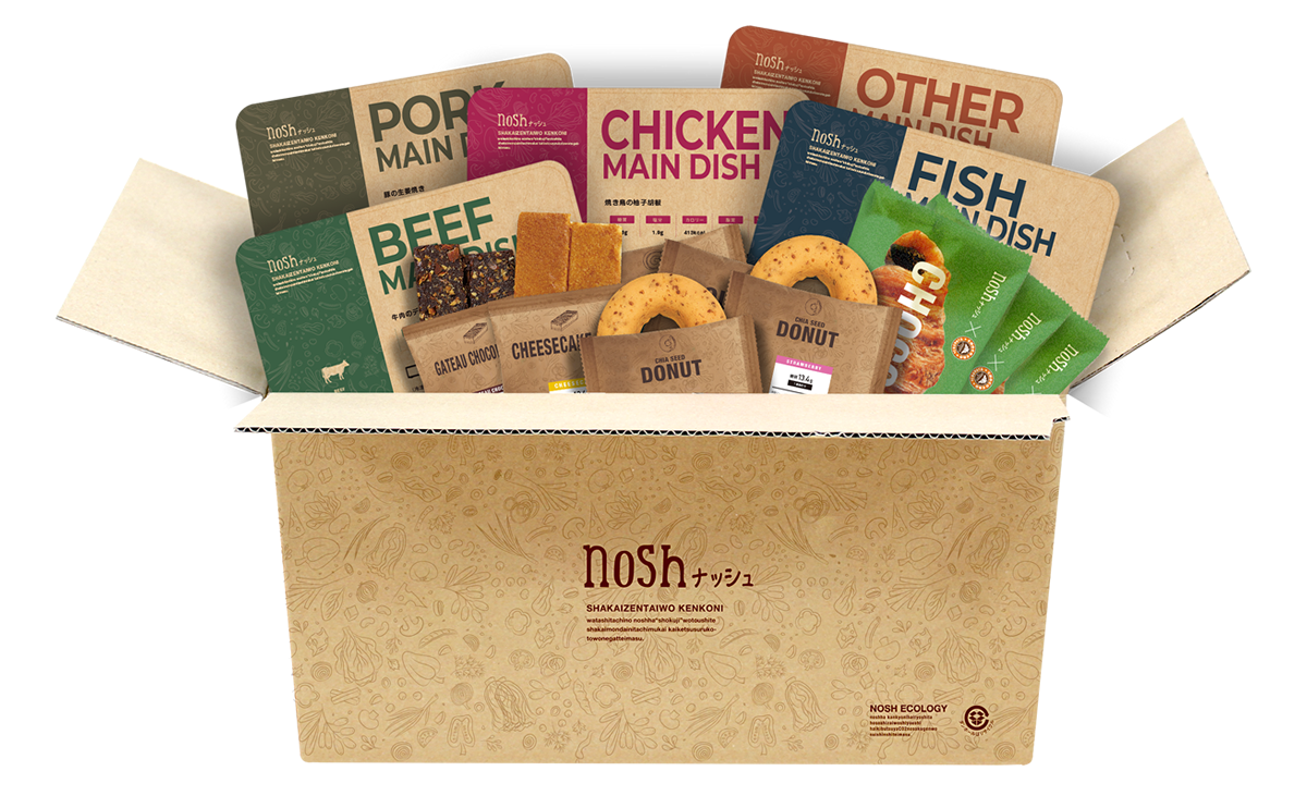 社会全体を健康に。」を理念とする当社は、商品の企画・製造・販売までを一貫して自社で行っています。 多忙な毎日の中で健康的な食事の準備をすることは簡単ではありません。そうした中で、手軽に栄養管理ができる「nosh」は、自宅に常備される“国民食”となることを目指しています。自社専属シェフと管理栄養士が開発したすべての商品は糖質30g以下、塩分2.5g以下の栄養価を満たし、常時60品以上の商品は継続的にご満足いただけるよう、毎週3商品の新アイテムを投入しています。