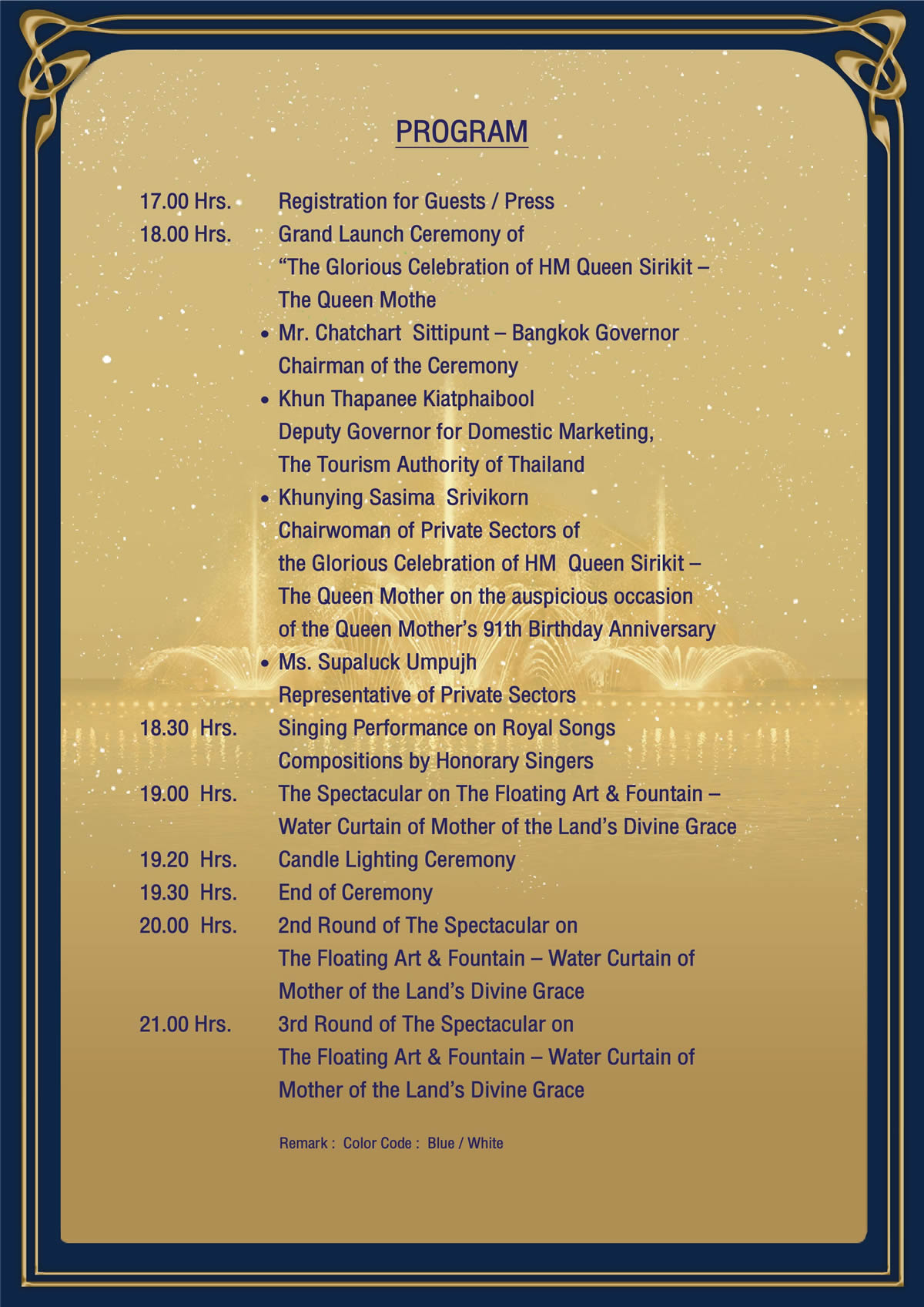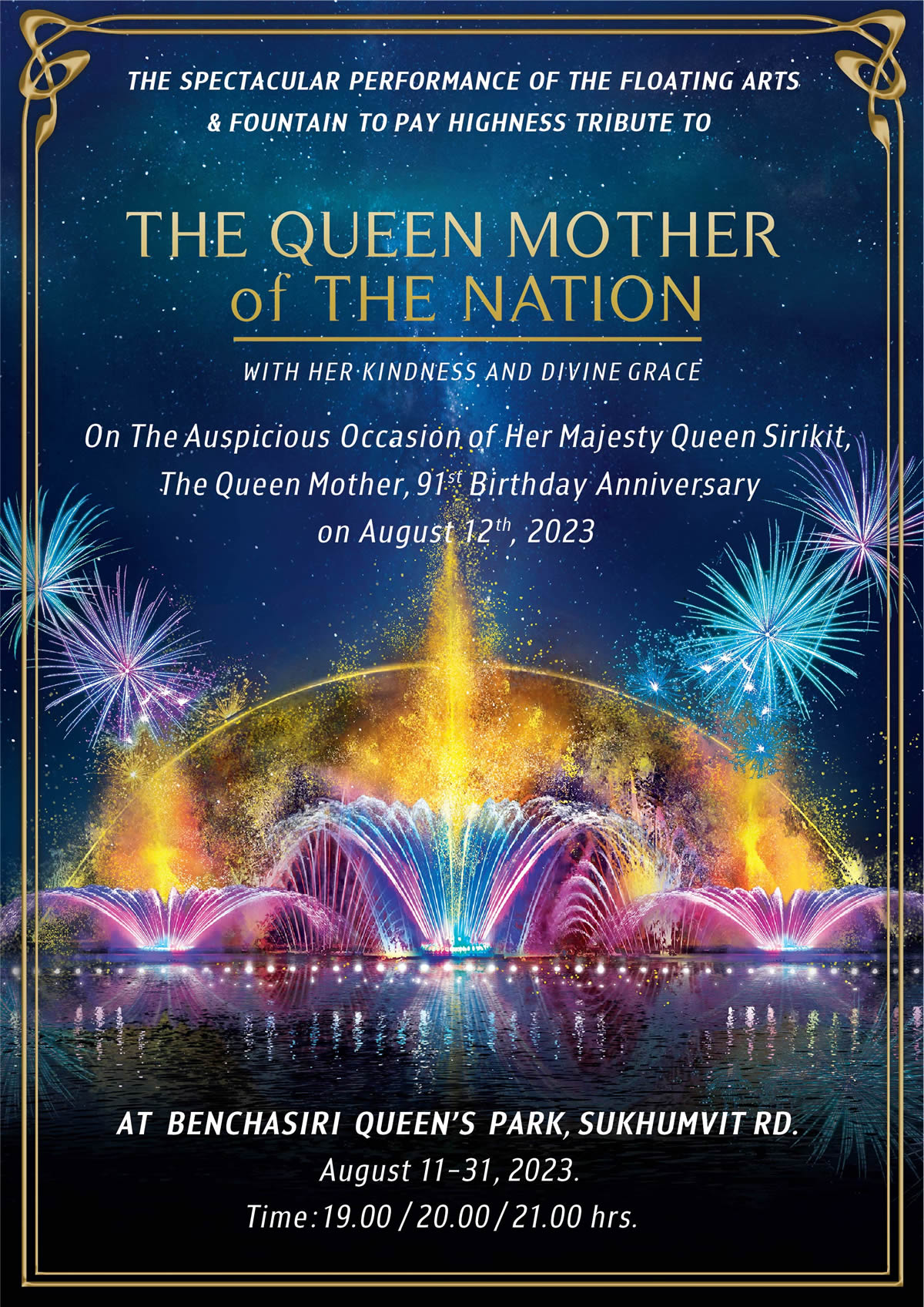 「母の日」を記念してバンコク・スクンビット通りのベンジャシリ公園(エンポリアム隣)では、バンコク都庁、タイ国政府観光庁、民間セクターが協力して8月11日(金)から31日(木)まで、ウォーターカーテンと噴水ショーが披露されます。ショーは午後7時、午後8時、午後9時の1日3回。