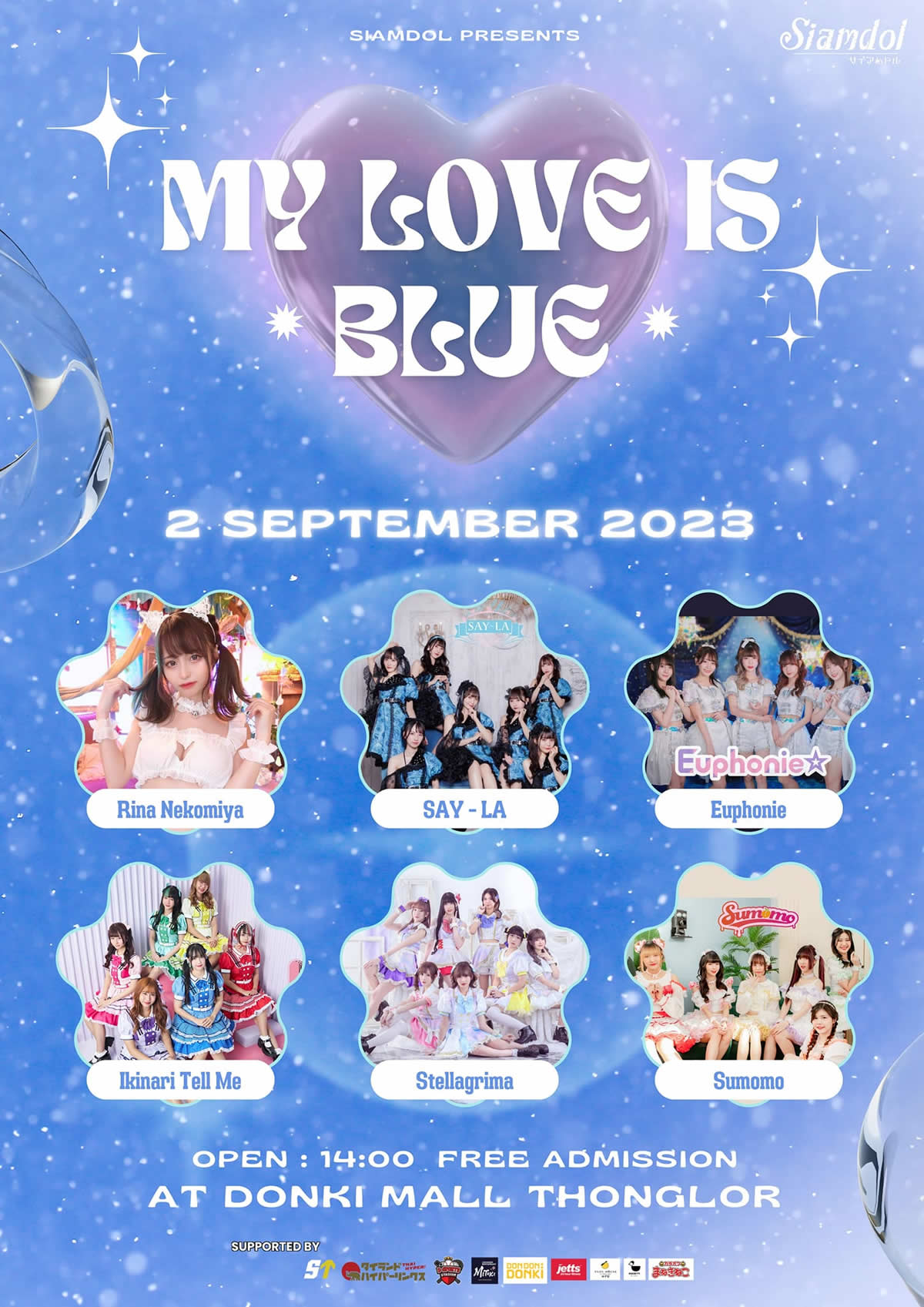 日タイのアイドル6組が出演する対バンライブ「My love is Blue」が、バンコクのドンキモール・トンローで2023年9月2日(土)に開催されます。入場無料。主催はSiamdol。