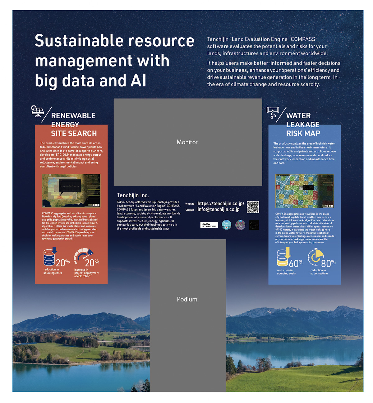 天地人は、Thailand Space Week 2023の「Japan Pavilion」に出展し、無料のオンラインGISプラットフォーム『天地人コンパス』の活用事例を展示します。