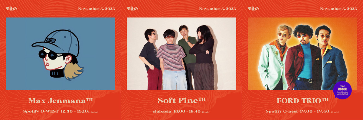 “アジアで注目を集めるアーティストが一堂に介するショーケース”というコンセプトをもとに開催される当音楽イベント。初回のラインアップとして選ばれたタイのアーティストは、大人気タイ BL ドラマ「2gether The Series」の主題歌を担当した実力派シンガーソングライターの Max Jenmana、シティポップとシンセポップをミックスしたドリーミーなサウンドが癖になるオルタナロックバンドの Soft Pine、タイのソウルポップなどの要素を独特で圧倒的なグルーブに乗せリスナーを虜にするファンクバンドの Ford Trio の 3 組。いずれもタイのインディーズ界をリードし人気を博す注目のアーティストだ。