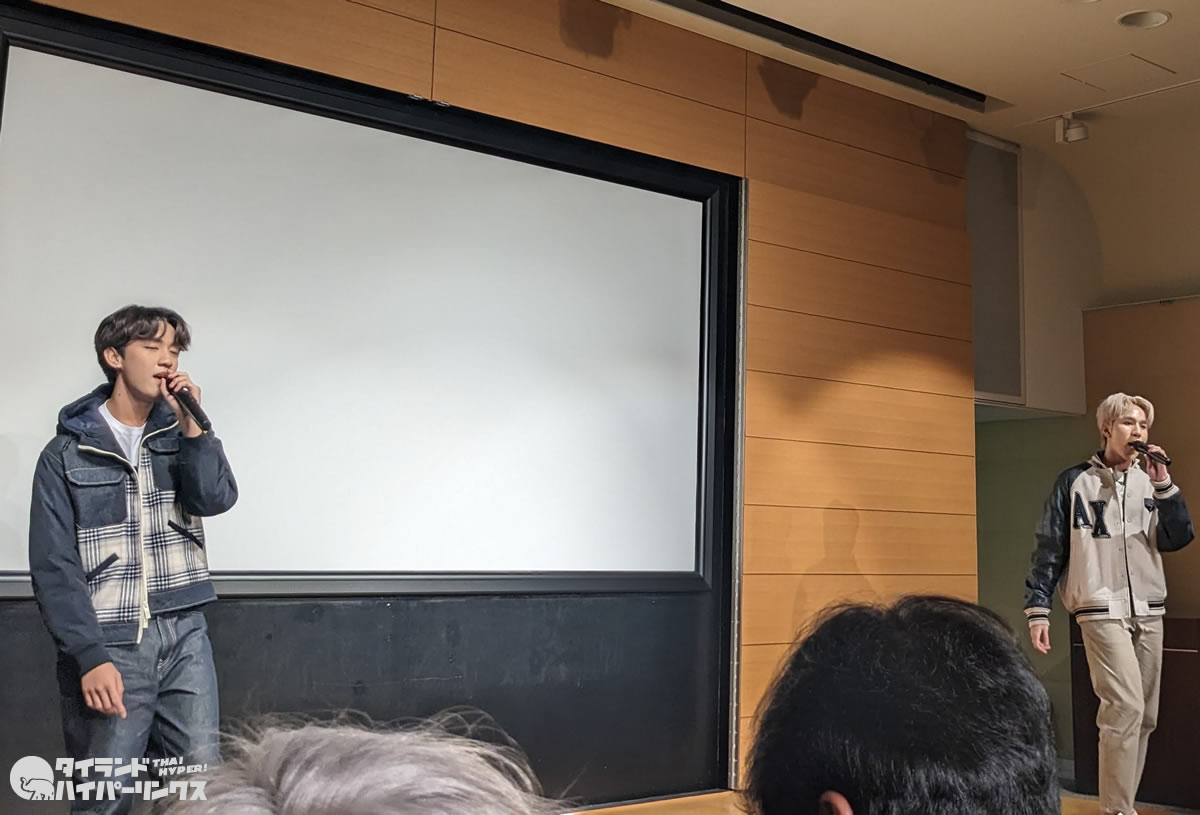 既に日本のタイBLファンにも広く知られているStar Hunter所属のMos PanuwatとBank Mondopさんを筆頭に、ドラマ俳優たちが歌を披露してくれました。