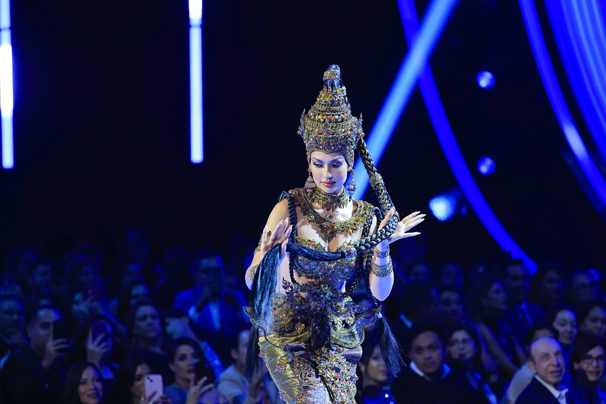 アントニア・ポーシウさんは、「アユタヤ王国の女神」と題された民族衣装を着て、タイの豊かで魅力的な文化を世界の舞台で紹介。 14世紀から18世紀のアユタヤ時代の母なる大地の像にインスピレーションを得たこの衣装は、その美しさと文化的重要性が高く評価されています。