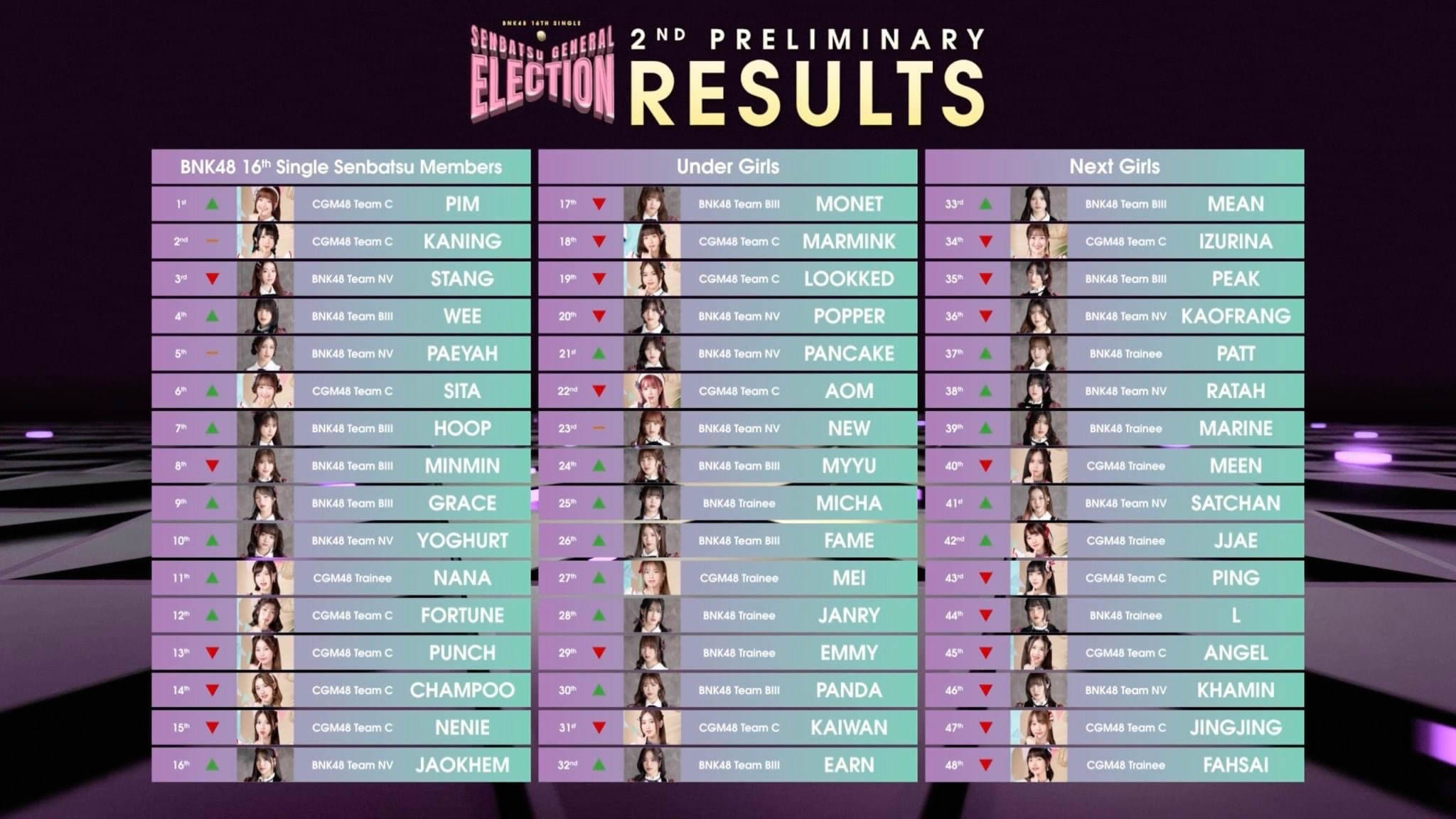 2023年12月1日夜、「BNK48 16thシングル選抜総選挙」の中間発表が行われ、CGM48のピムがトップとなりました。