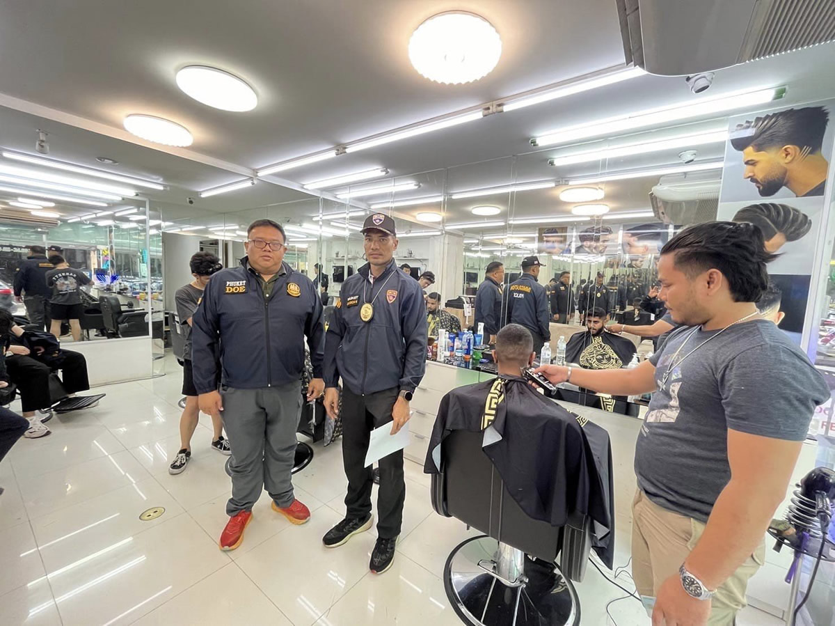 プーケット県入国管理局の検査の結果、「4U Barber Shop」ではタイ人理容師2名が外国人相手に散髪をしており、外国人理容師は確認できませんでした。