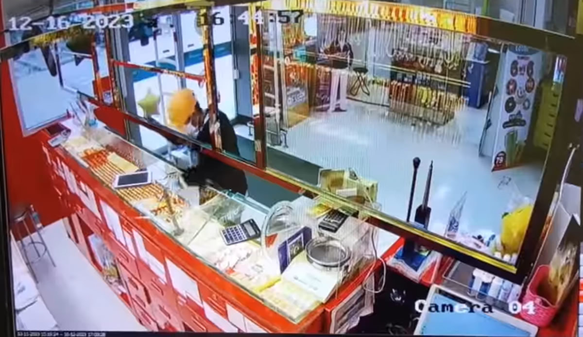 強盗は長い刃物で店員を脅し、ハンマーでカウンターのガラスを割って、60万バーツ以上に相当するゴールドの指輪やブレスレットを強奪。ナンバープレートのない黒と赤のホンダウェーブ125バイクに乗って逃走しました。