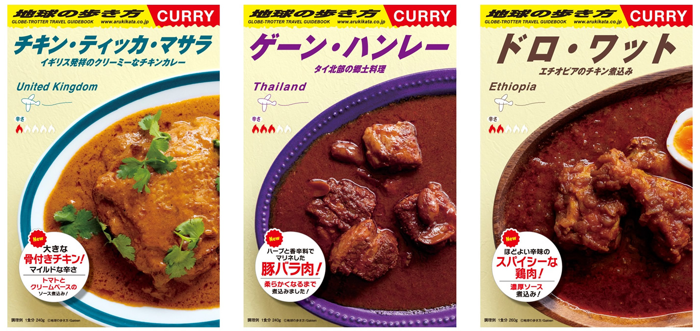 合同会社36チャンバーズ・オブ・スパイスは、旅行ガイドブック大手『地球の歩き方』監修のレトルトカレー商品、『世界のカレー図鑑レトルトカレーシリーズ』を発売します。第一弾としてイギリスの“チキン・ティッカ・マサラ”、タイの“ゲーン・ハンレー”、エチオピアの“ドロ・ワット”の全3種を展開します。