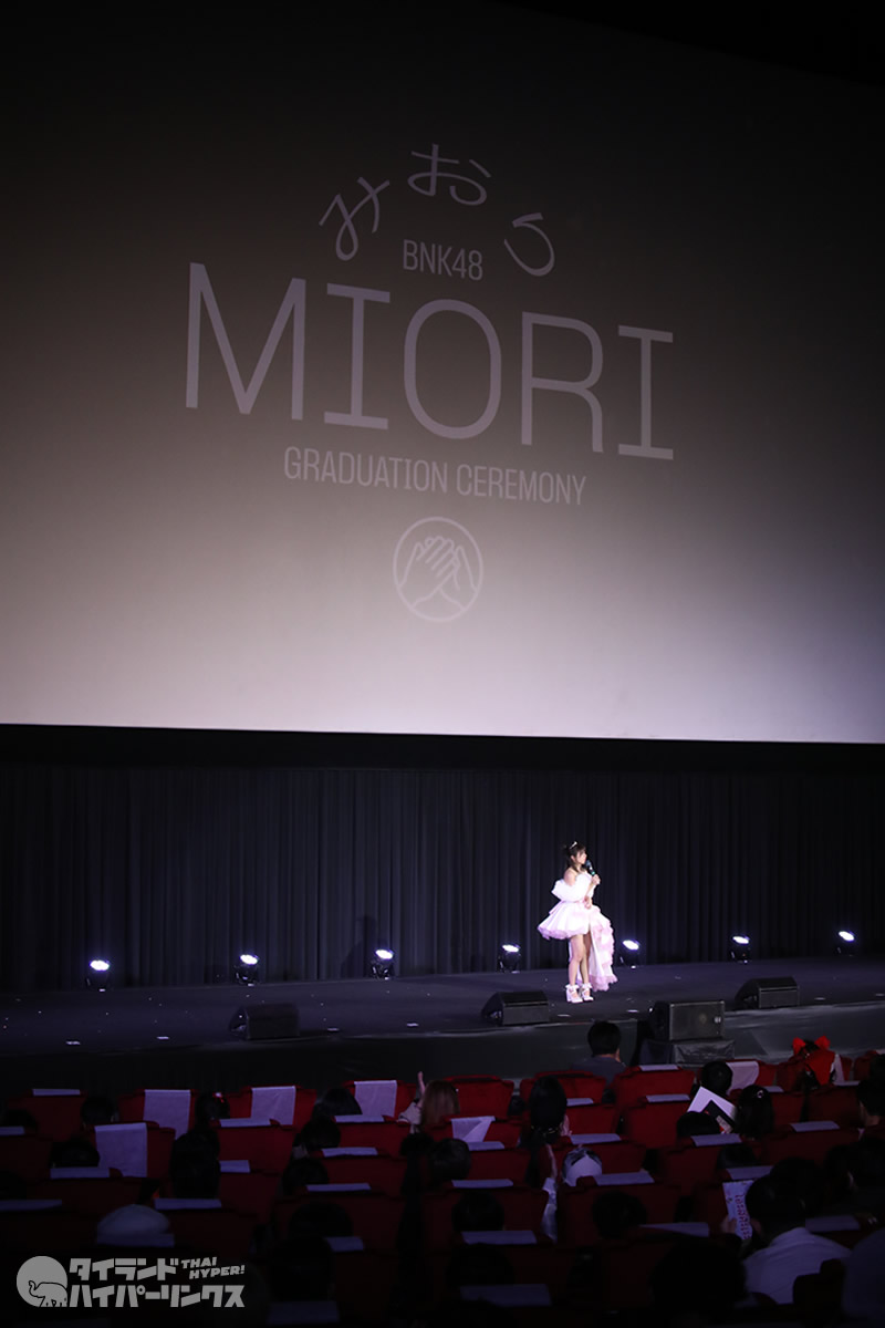 ミオリは、BNK48最後のパフォーマンスとして、卒業曲でセンターを務めた「Give me five」、「ビリーバーズ(日本語バージョン)」、「ジワるDAYS」などを披露し「桜の花びらたち」でAKB48としての2508日間の活動を終えました。