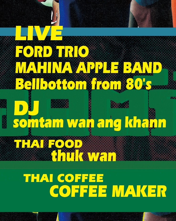 当日は地元福岡で活動する MAHINA APPLE BAND、Bellbottom from 80’s、タイ好きメンバーが集い始まった DJ PARTY 「ส ้มต ำ วันอังคำร (ソムタムワナカーン)」の出演に加え、タイ料理店 thuk wan や、Thai 産コーヒー豆とのコラボを提供する COFFEE MAKER も出店が決定している。