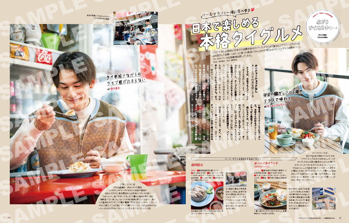 さらに、見逃し厳禁のタイドラマ話題作ガイドや注目のT-POPシーン&アーティスト紹介のほか、日本で味わえる本格タイグルメに、いますぐ手に入れたい最新タイコスメなど、広がるタイカルチャーの魅力もたっぷりナビゲート。
