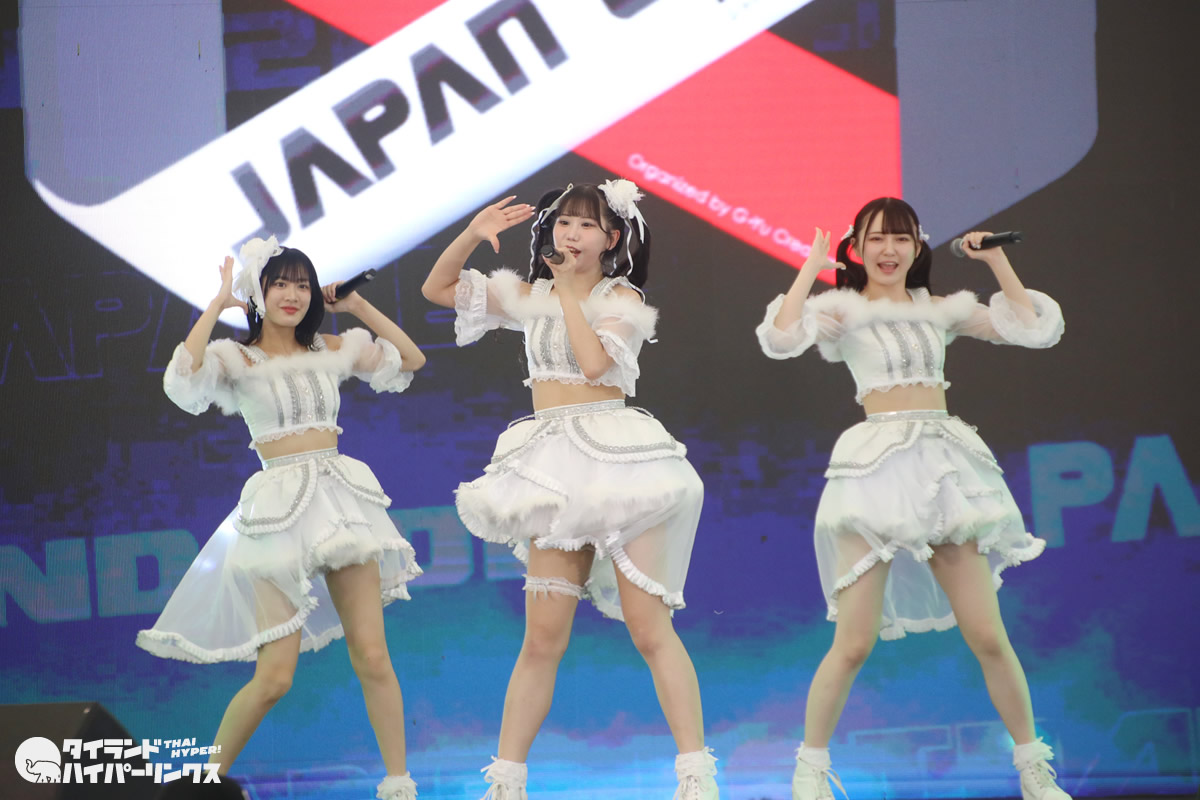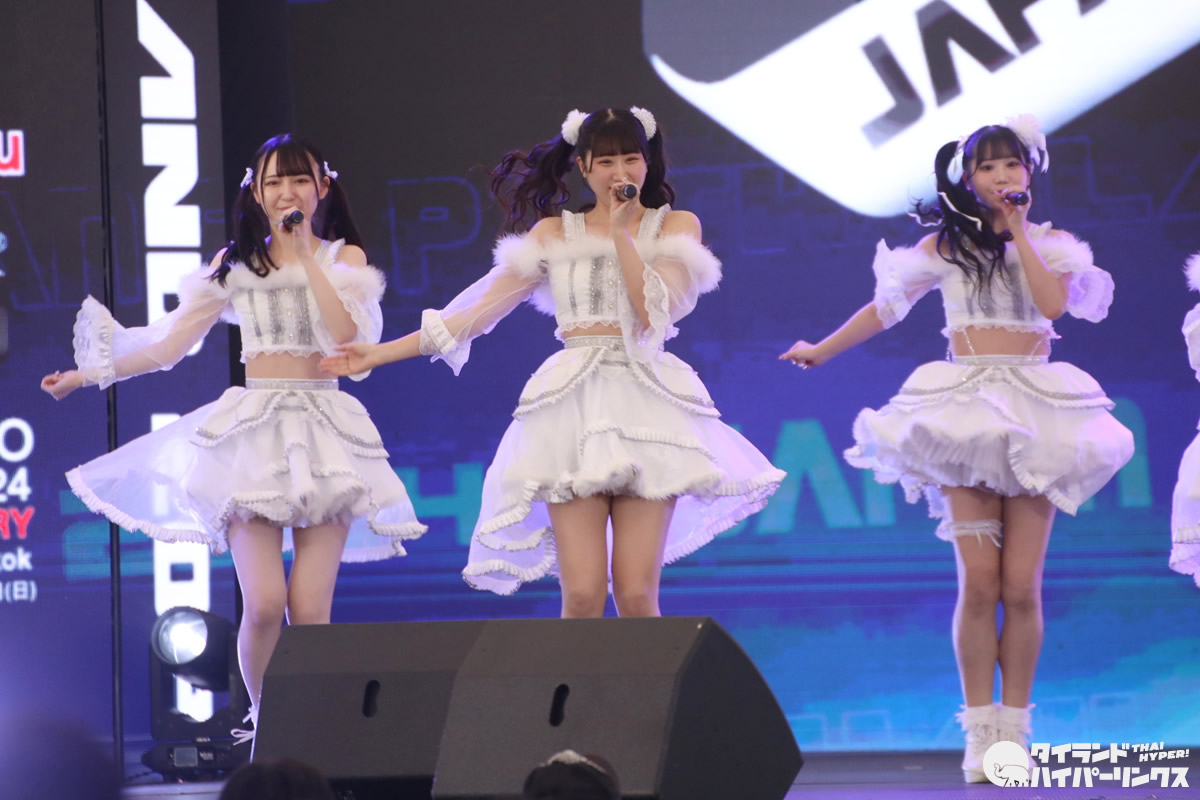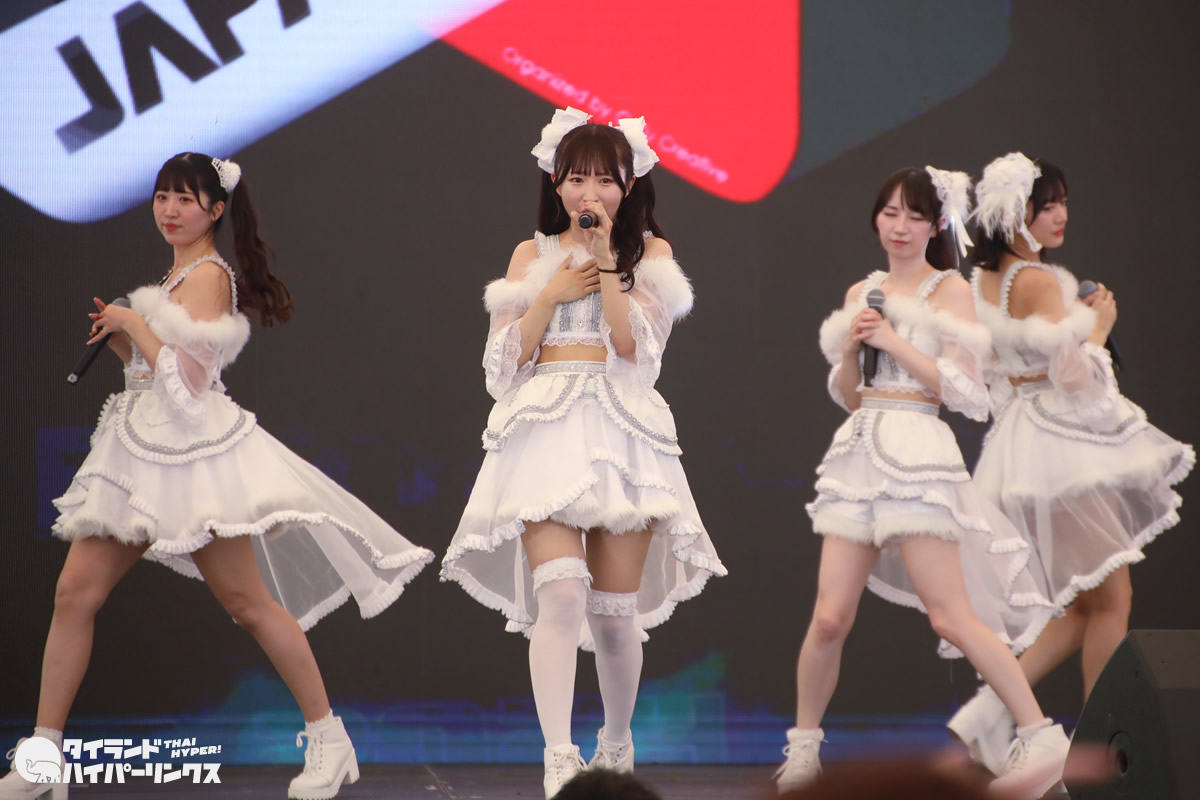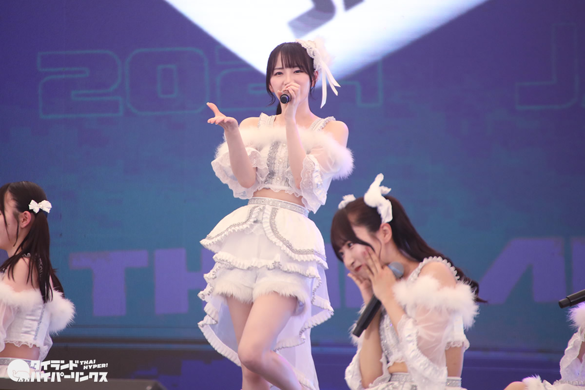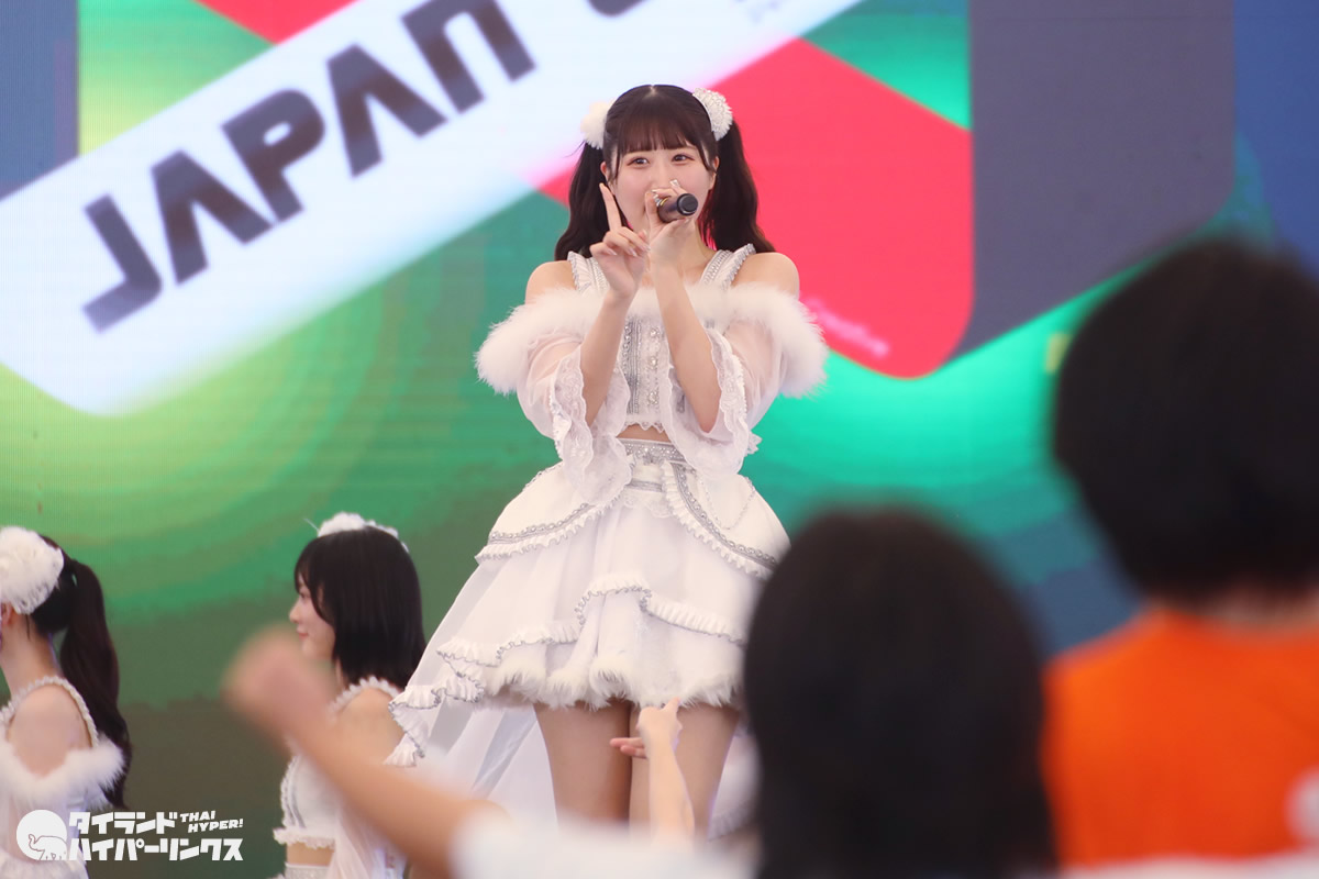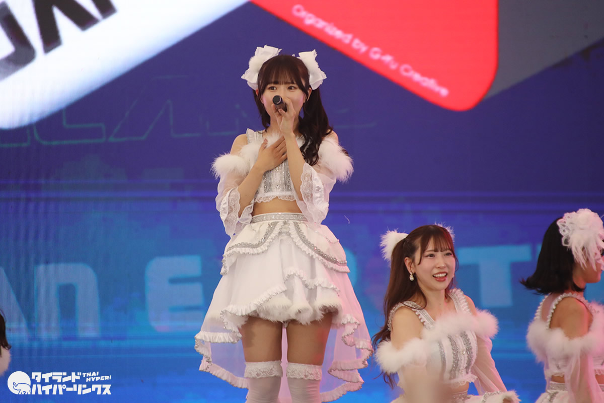 最終日のメインステージ(SORA Stage)に登場したのは、I-GETに所属するSAY-LA。これまで何度となくタイを訪れているSAY-LAですが、今回は新体制での遠征。2代目リーダーとなった咲山しほを中心に、7人のメンバーでタイのファンの前でパフォーマンスを行いました。