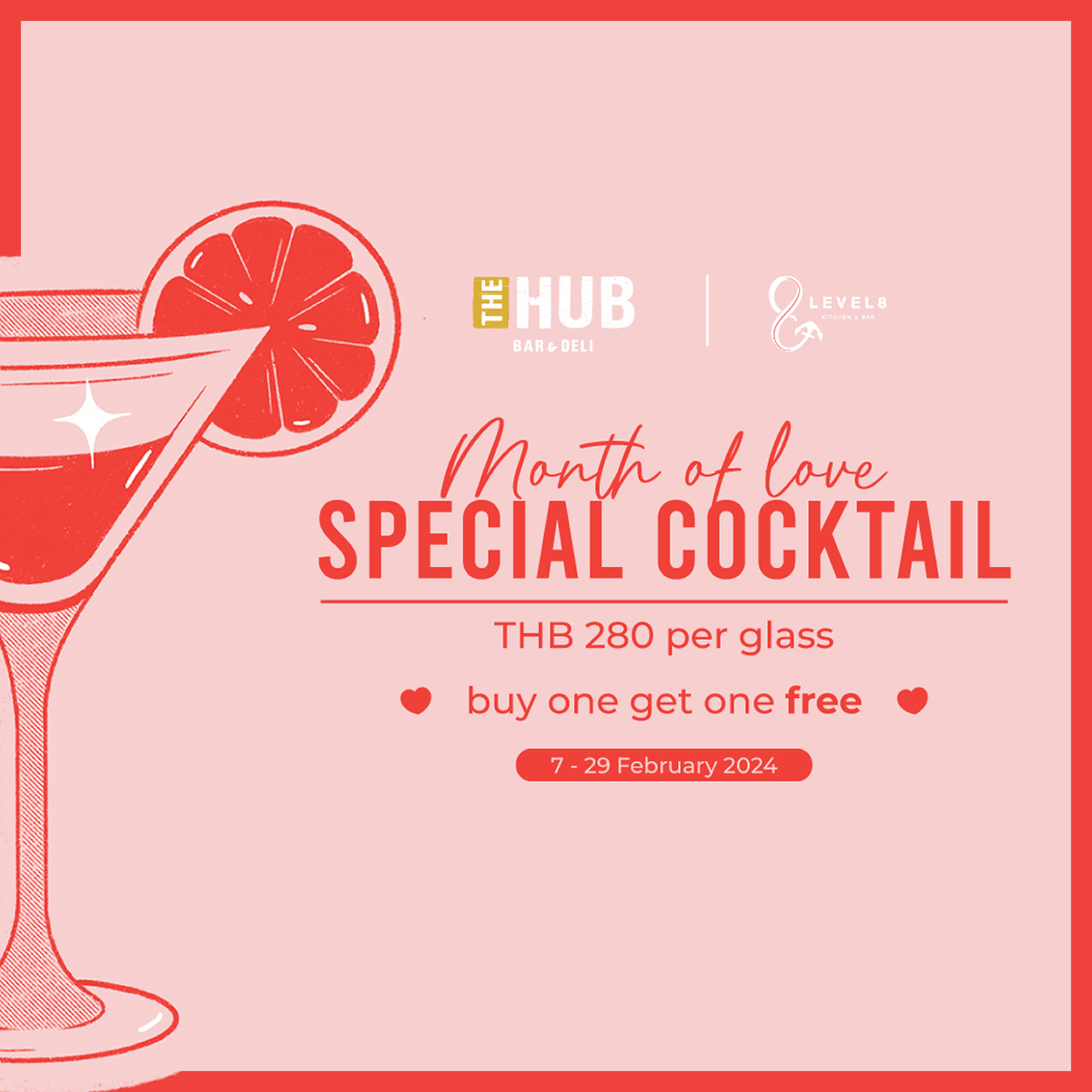 ハブ バー & デリは、愛に満ちた月を通して、特別なカクテル の1ゲット1プロモーションにカップルを招待します。 ワールド オブ ラブ、ドランク イン ラブ、ラブ ポーションなどの限定カクテルは1 杯わずか280バーツで、さらに2 杯目をプレゼント!