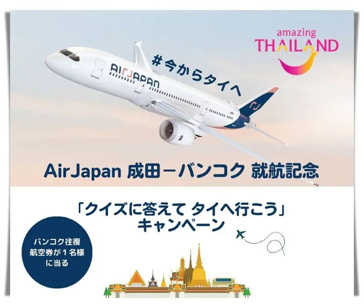 ■AirJapan成田-バンコク就航記念「バンコク行き往復航空券」が当るキャンペーン|タイ国政府観光庁