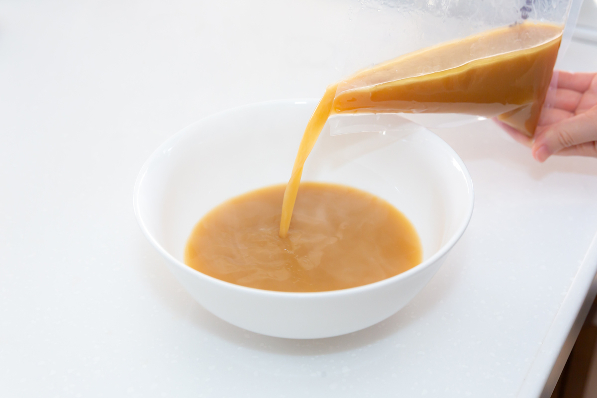 これまで、王道の本格的ラーメンとして第1弾「しょうゆ」、第2弾「塩」を発売してきました。第3弾は、宮崎地頭鶏を長時間煮込んだ、濃厚な出汁ガラスープの「鶏白湯しょうゆラーメン」を開発しました。鶏白湯スープは、濃厚になるまで長時間煮詰め続ける必要があり、加熱時間や濃度の調整に手間をかけたことで、満足いただける味わいに仕上げられました。