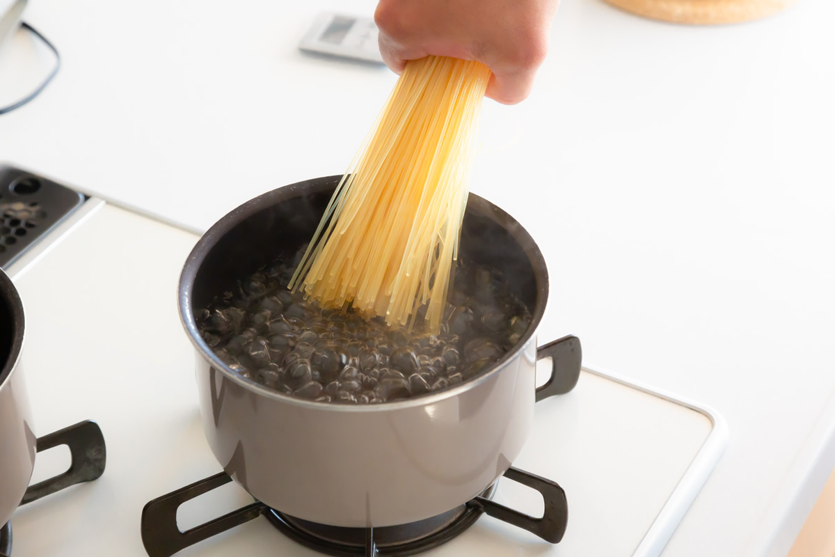 ○出汁ガラと香味野菜を入れて、にんにくのみを途中で取り出し、にんにくの風味を出しすぎないように調整。