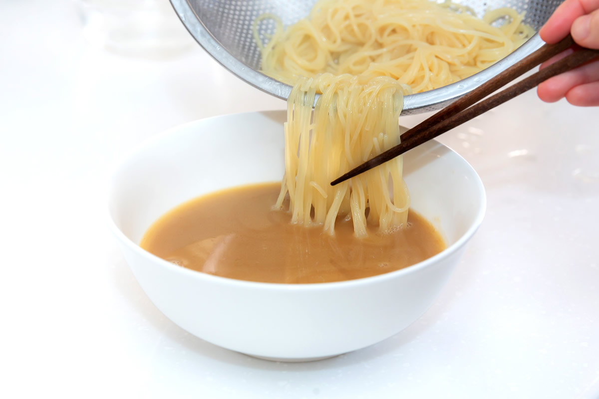 ●ラーメン特有のコシと風味が、米粉由来のグルテンフリー麺に健在