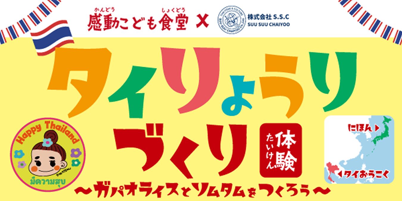 一般社団法人感動こども協会は2024年2月25日、新たに同協会の賛助会員となった株式会社SUU・SUU・CHAIYOOとのコラボレーション企画『「タイりょうりづくり体験」~ガパオライスとソムタムをつくろう~』を、「感動こども食堂 ビストロアジル 蒲田店」にて開催します。