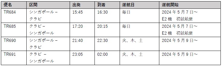 Explorer3.0という愛称を持つ最初に導入されるE2機は、2024年5月7日からスクートのクラビとハートヤイへの既存便*1を引き継ぎ、両都市への就航は週7便から10便に増便されます。