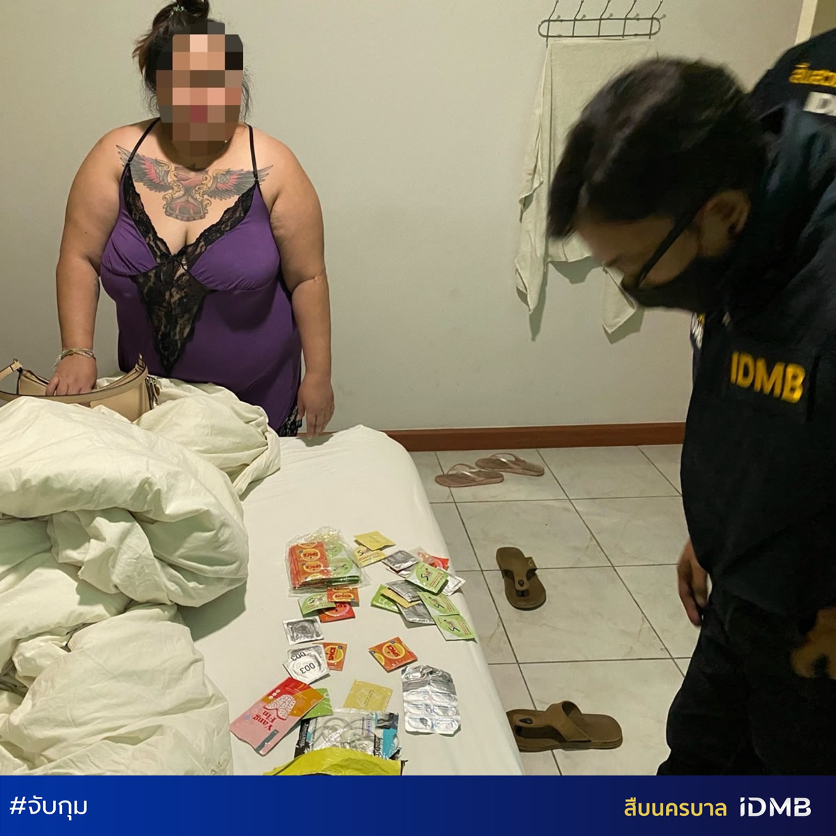 逮捕されたタイ人の女は、X(旧Twitter)でパーティーを宣伝し、自分が調達した肥満女性と無制限の性的行為を提供。食事とアルコールも用意し、参加者には一人1800バーツ(デポジット800バーツ)を請求していました。