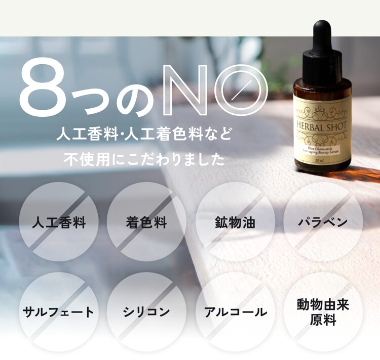 その際には、実際に工場を見に行き工場のオーナーと直接話をしたり、試作品づくりを通じてメーカーそれぞれの配合の強みや化粧品づくりへの思いを聞くなど検討を重ね、質はもちろん、日本向けに商品を出すにあたり信頼できる工場を選びました。すべての工場での試作品を合わせるとおそらく80種類、最終的に決めた工場だけでも試作品の数は48種類にも及びましたが、その結果、本当に納得のいく形に仕上がったものを商品化したのが「Herbal Shot」の4アイテムです。守るだけのスキンケアに陥りがちな、ゆらぎ肌や敏感肌に悩む人の選択肢を広げることを目指しています。