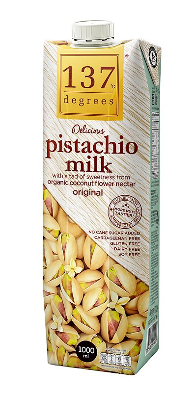「137degrees」は、誰でも飲める美味しいミルクを作りたいという創業者の想いから生まれた植物性ミルクです。定番のアーモンドだけでなく、ピスタチオやウォールナッツの魅力のラインナップを揃えております。また、パッケージデザインが高級感あふれる金色にリニューアルいたします。