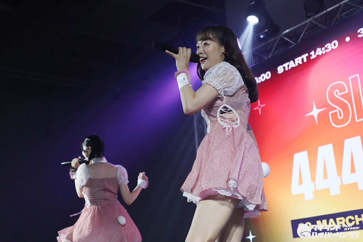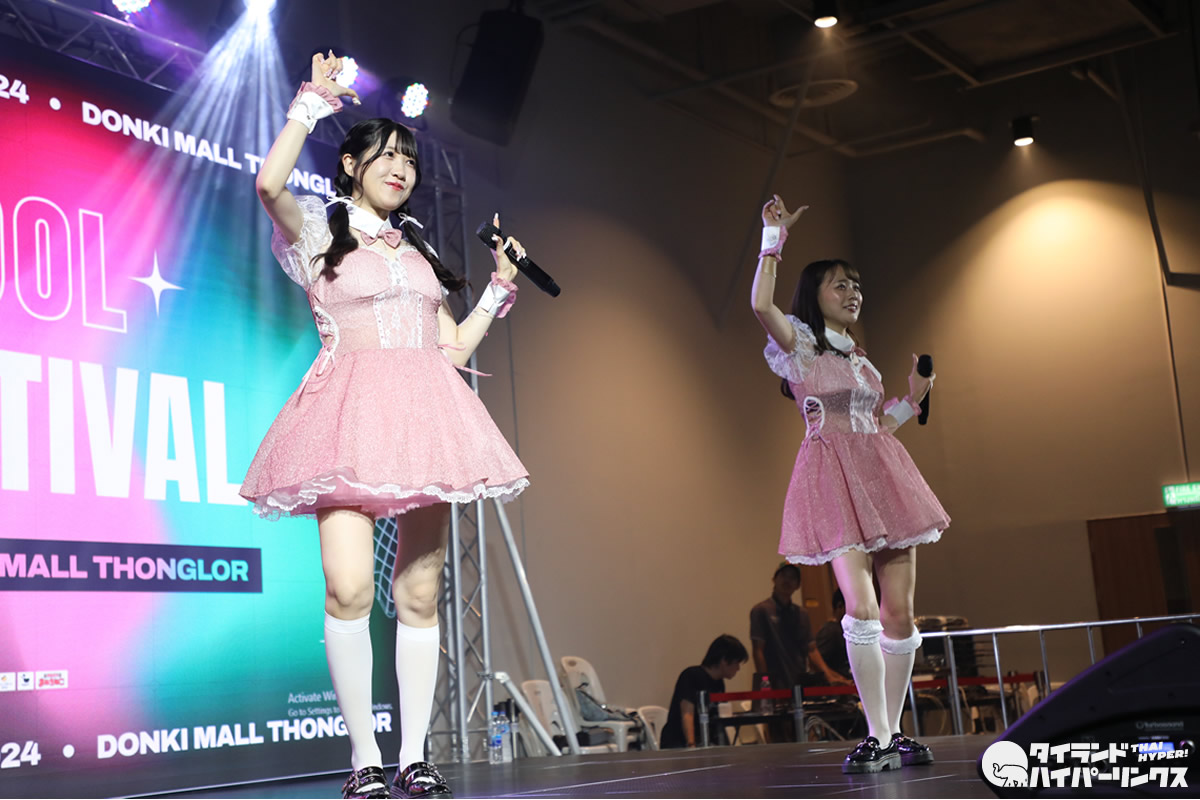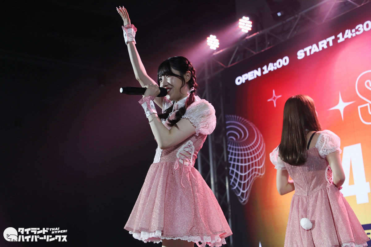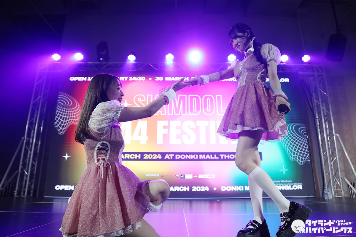 バンコクのドンキモール・トンロー4階のホールで2024年3月30日(土)、日タイのアイドル8組が出演したアイドル対バンライブ「SIAMDOL 444 FESTIVAL」が開催。 MII×HINAがステージに登場しました。