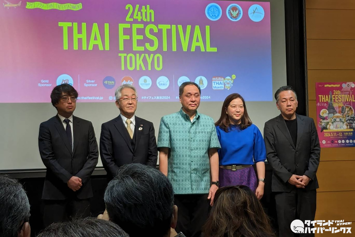 東京・代々木公園で2024年5月11日(土)・12日(日)の2日間、タイ人とタイ好きのためのビッグイベント「第24回タイフェスティバル東京」が開催。4月4日(木)には在京タイ王国大使館でPRイベントが開催され、出演者ラインナップが発表されました。