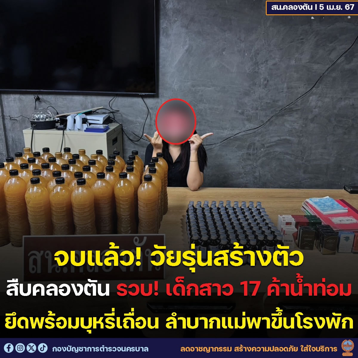 タイ警察クロンタン署は2024年4月5日、無許可でクラトム水を販売し、密輸タバコなどを所持していた17歳のタイ人少女を逮捕しました。