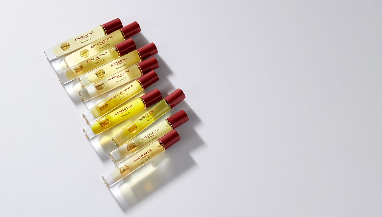 古代の香油文化にインスピレーションを得て生まれた、現代的な香りの表現。水やアルコールを使わず、アーユルヴェーダで使用されるオーガニック認証モリンガシードオイルをベースに、希少な植物由来の芳香成分を20-30%の高濃度で配合したパフュームオイル(オイル香水)。