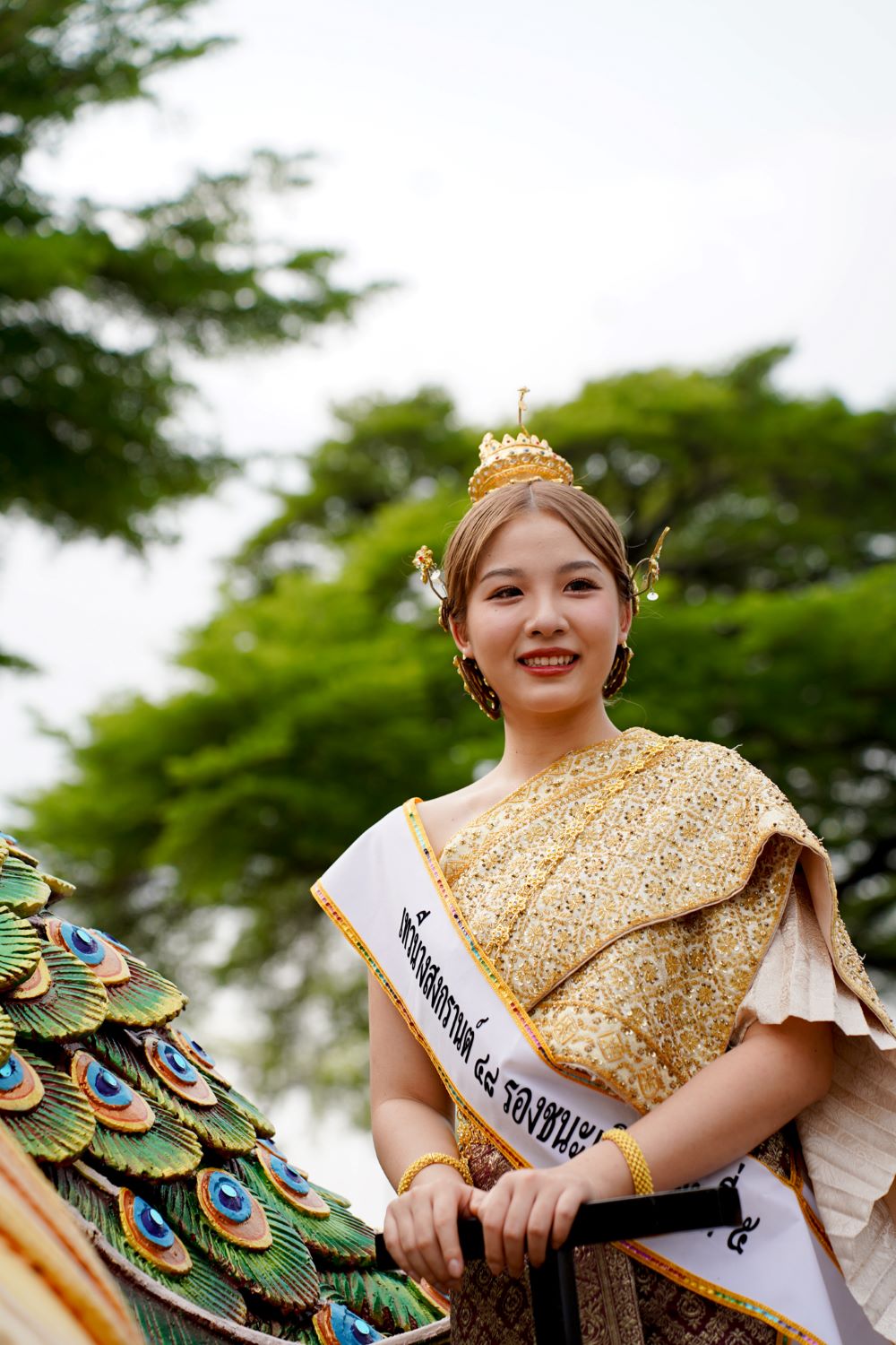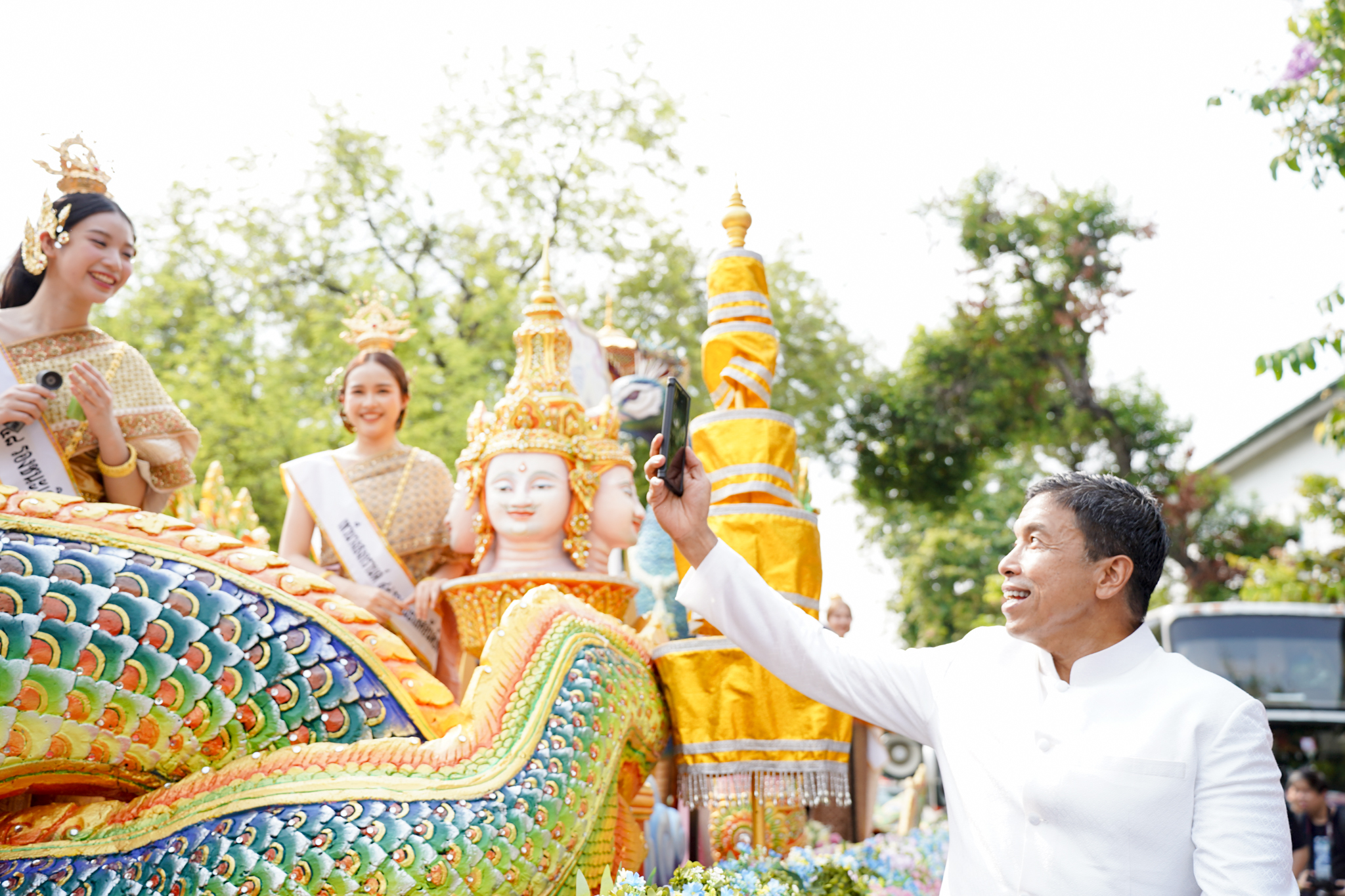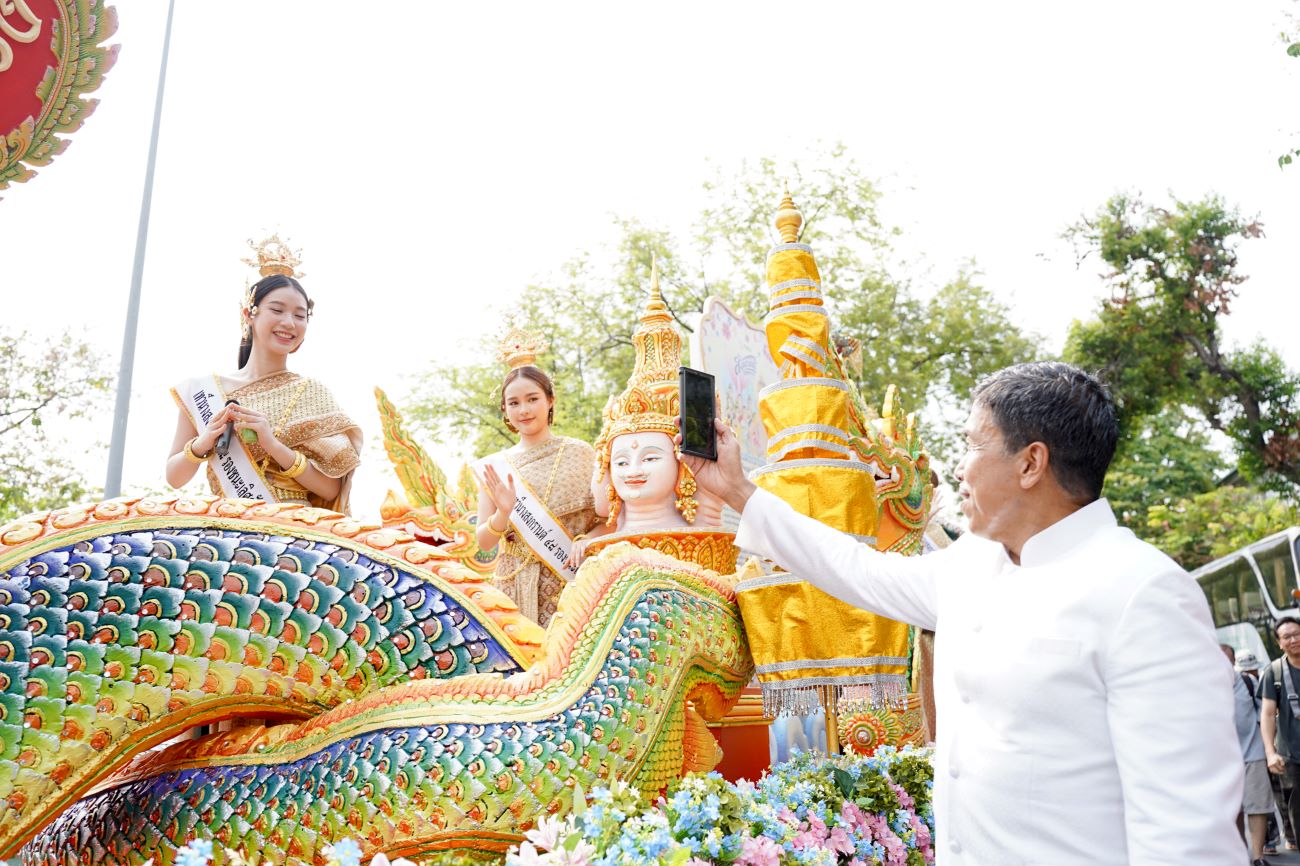 パレードに参加したのは、シャンプーCGM48、ニーニーCGM48、ルークケードCGM48、フープBNK48、シターCGM48、カニンCGM48の6名。この6人は、先日の「BNK48 & CGM48 Kiss Me! Fun Fair」でのコンテストで、「ソンクラン祭りの大女神」として選ばれたメンバーです。6人は、タイの文化、観光、料理を世界に広める「タイ文化大使」としての役割を果たし、熟練アーティストのKeng Tachayaと共に楽曲制作に取り組み、近々日本の東京で初めての公演を行う予定です。(タイフェスティバル東京でしょうか?)