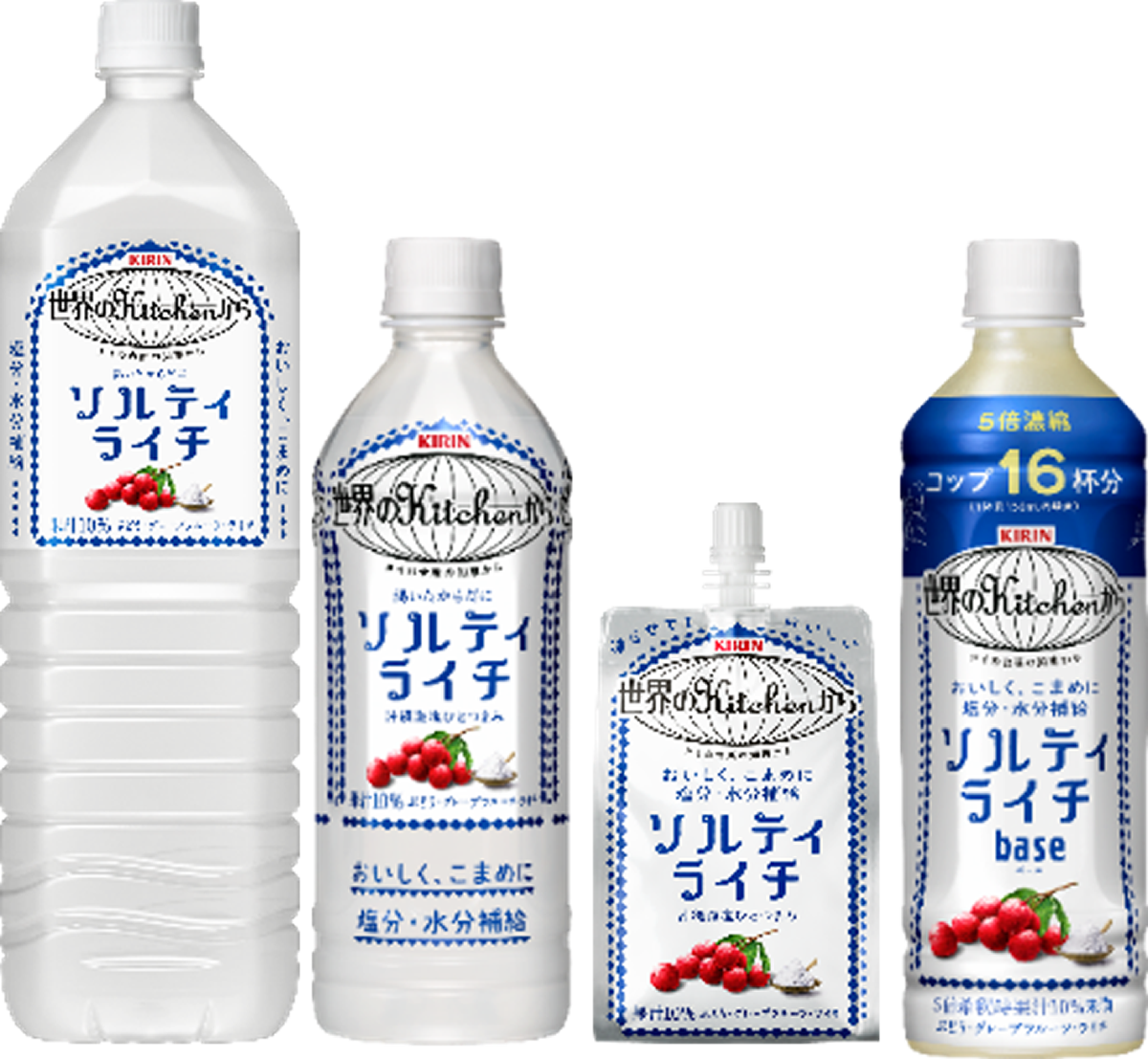 「キリン 世界のKitchenから ソルティライチ」シリーズは、年間通じて幅広いシーンで飲用されています。また、発売時より「塩分・水分補給」の訴求を継続して行っており、熱中症対策飲料※2としても支持いただいています。2023年7~9月の販売数量は前年比112%※3に伸長しました。