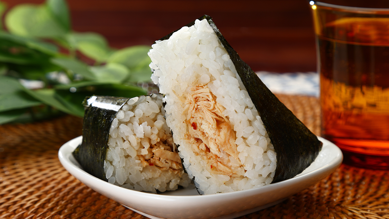 タイのチキンライスといわれている「カオマンガイ」をおにぎりにしました。中具は、ほぐし蒸し鶏にナンプラー香る甘辛いカオマンガイのタレを絡め「カオマンガイ風」に。鶏肉とご飯のコンビネーションが絶妙な組み合わせです。