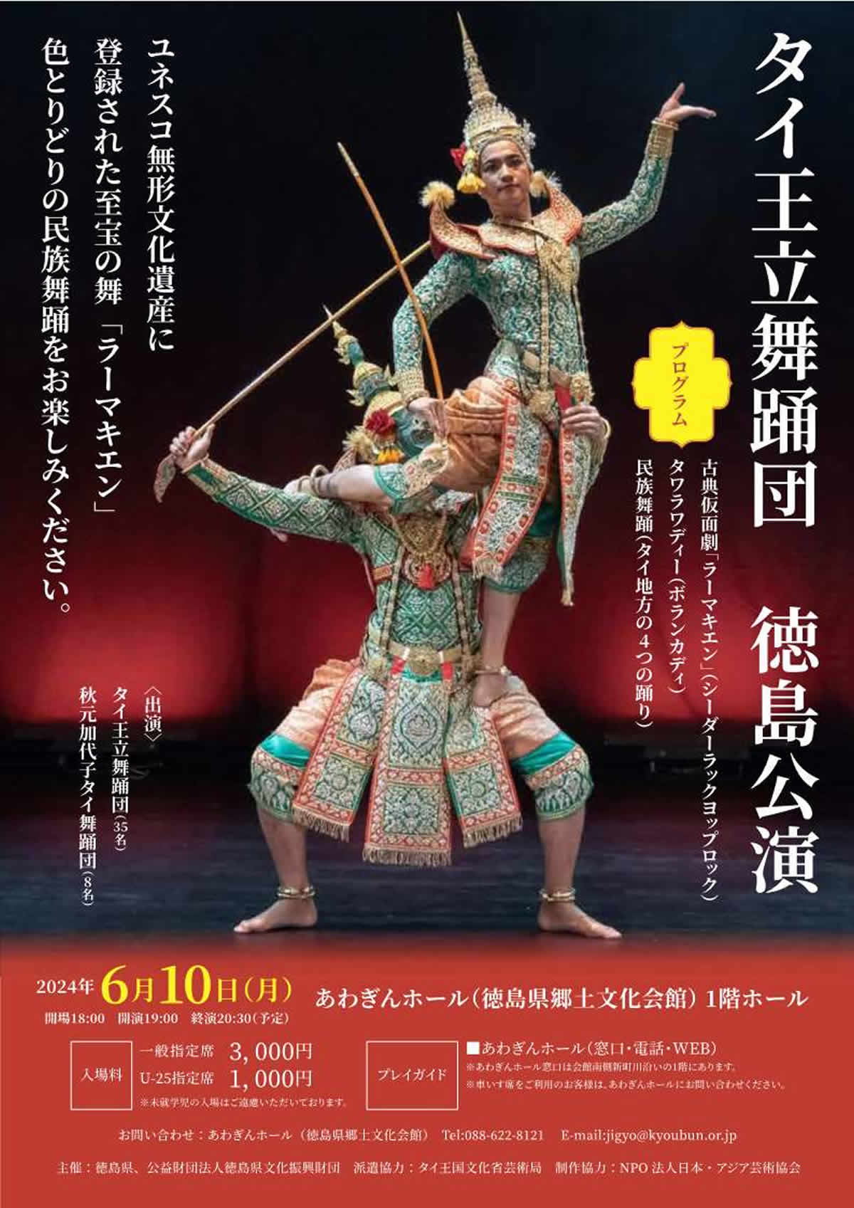 世界各国で公演活動を展開し、タイ国内において最高峰の舞踊団として位置づけられている「タイ王立舞踊団」の徳島公演を、(公財)徳島県文化振興財団と共催し実施します。