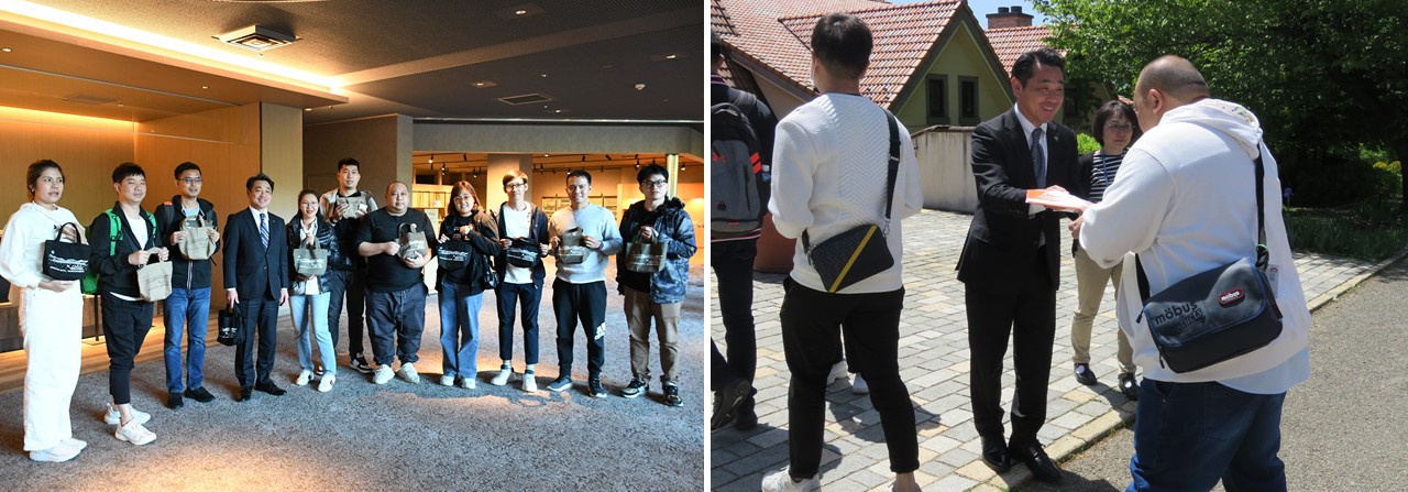 この度、市長トップセールス後初のタイ人団体旅行客約170名が2024年5月9日(木)および5月18日(土)の2回に分け北杜市へ訪れることとなり、5月9日(木)にグランドメルキュール八ヶ岳リゾート&スパ(山梨県北杜市大泉町)へ2日間宿泊、両日市内を観光し、市長がタイ人観光客を、市オリジナルグッズを手渡しして迎えました。