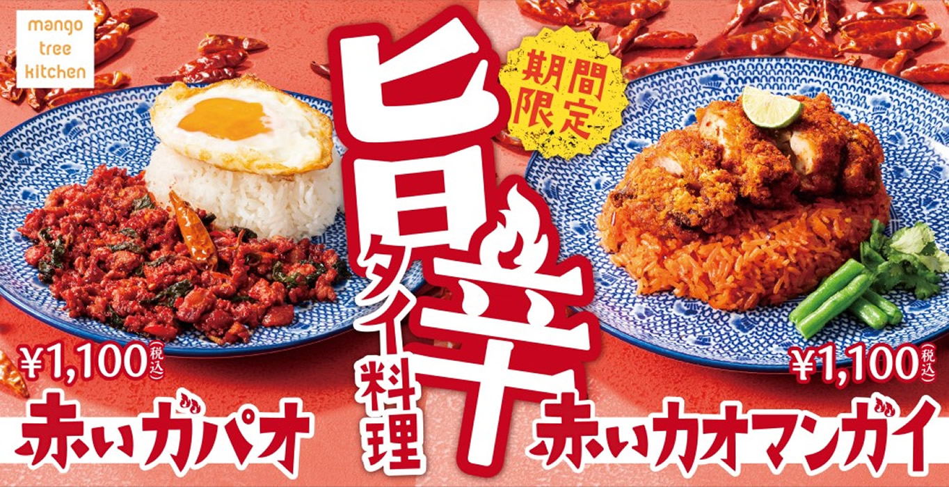 タイ・バンコクに本店をもつ「マンゴツリー」の姉妹店で本格タイ料理をファストフードのようにカジュアルに楽しめるイートイン&テイクアウト「マンゴツリーキッチン”ガパオ”」にて「赤いガパオ」、「マンゴツリーキッチン”カオマンガイ”」にて「赤いカオマンガイ」を2024年5月24日(金)より期間限定で販売します。
