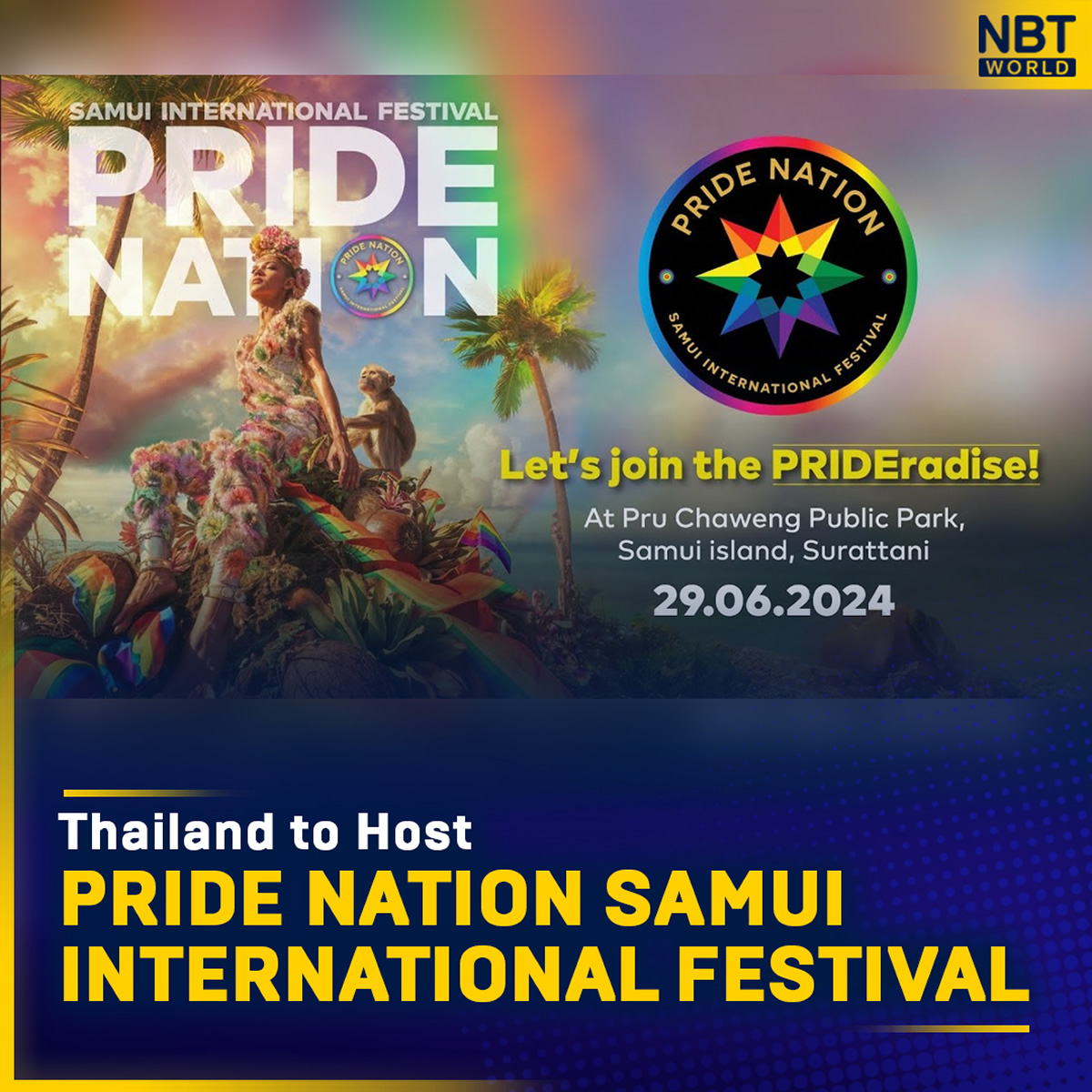 この祭典は「Let’s Join PRIDEradise」というテーマで行われ、タイ政府と民間機関、具体的にはタイ国政府観光庁、スラタニ県、およびRS MULTIMEDIA & ENTERTAINMENTの協力のもとに企画され、世界中、特に東南アジアからの観光客を迎え、プライド月間を祝うためにサムイ島を中心地に変えることが期待されています。また、サムイ島の観光シーズンのピークを前にして、観光と経済の活性化を図り、10万人以上の観光客を惹きつけることを目指しています。