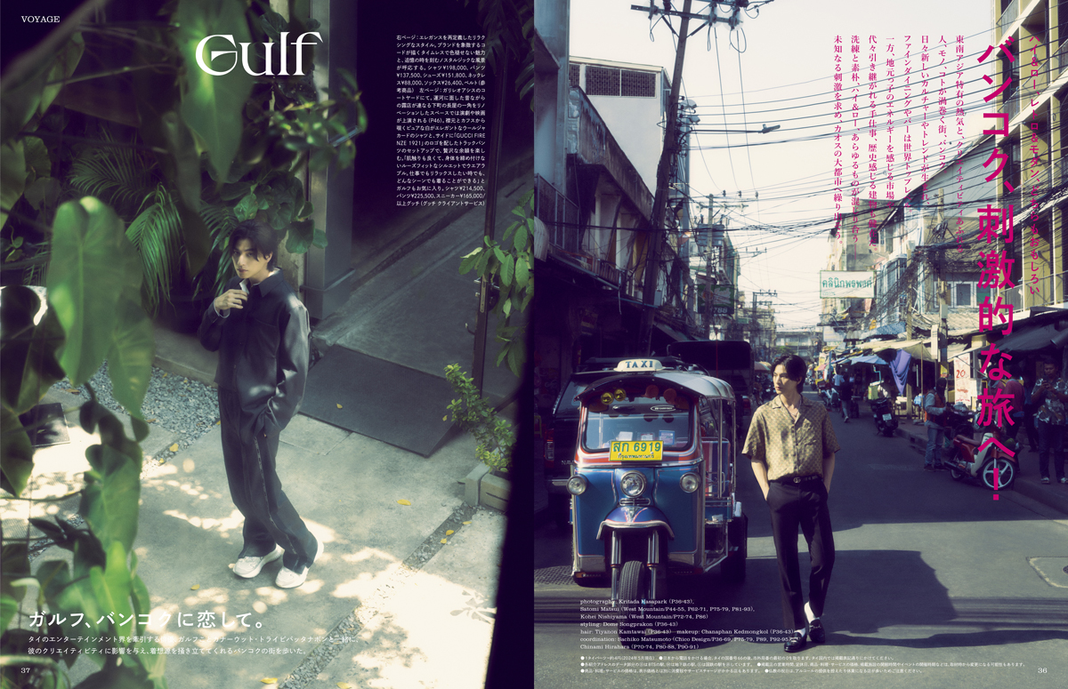 タイのエンターテインメント界を牽引する俳優、ガルフことカナーウット・トライピパッタナポンと一緒に、彼のクリエイティビティに影響を与え、着想源を掻き立ててくれるバンコクの街を歩いた。
