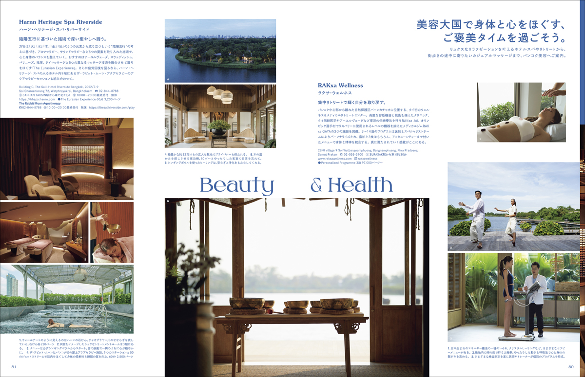 リュクスなリラクゼーションを叶えるホテルスパやリトリートから、街歩きの途中に寄りたいカジュアルマッサージまで、バンコク美容へご案内。