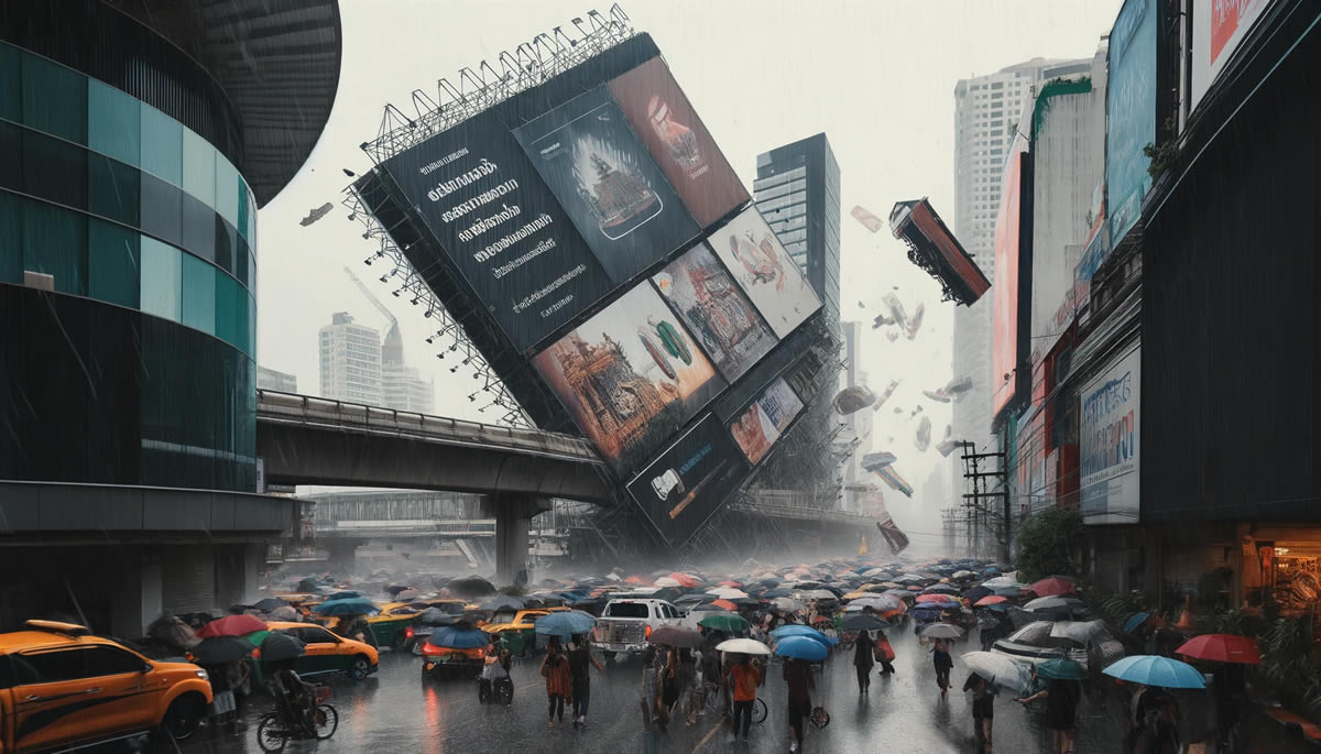 タイ内務省の報道官は2024年5月24日、全国で1,000以上の大型の屋外広告看板が違法に設置されており、雨季の嵐の際に危険をもたらす可能性があると発表しました。