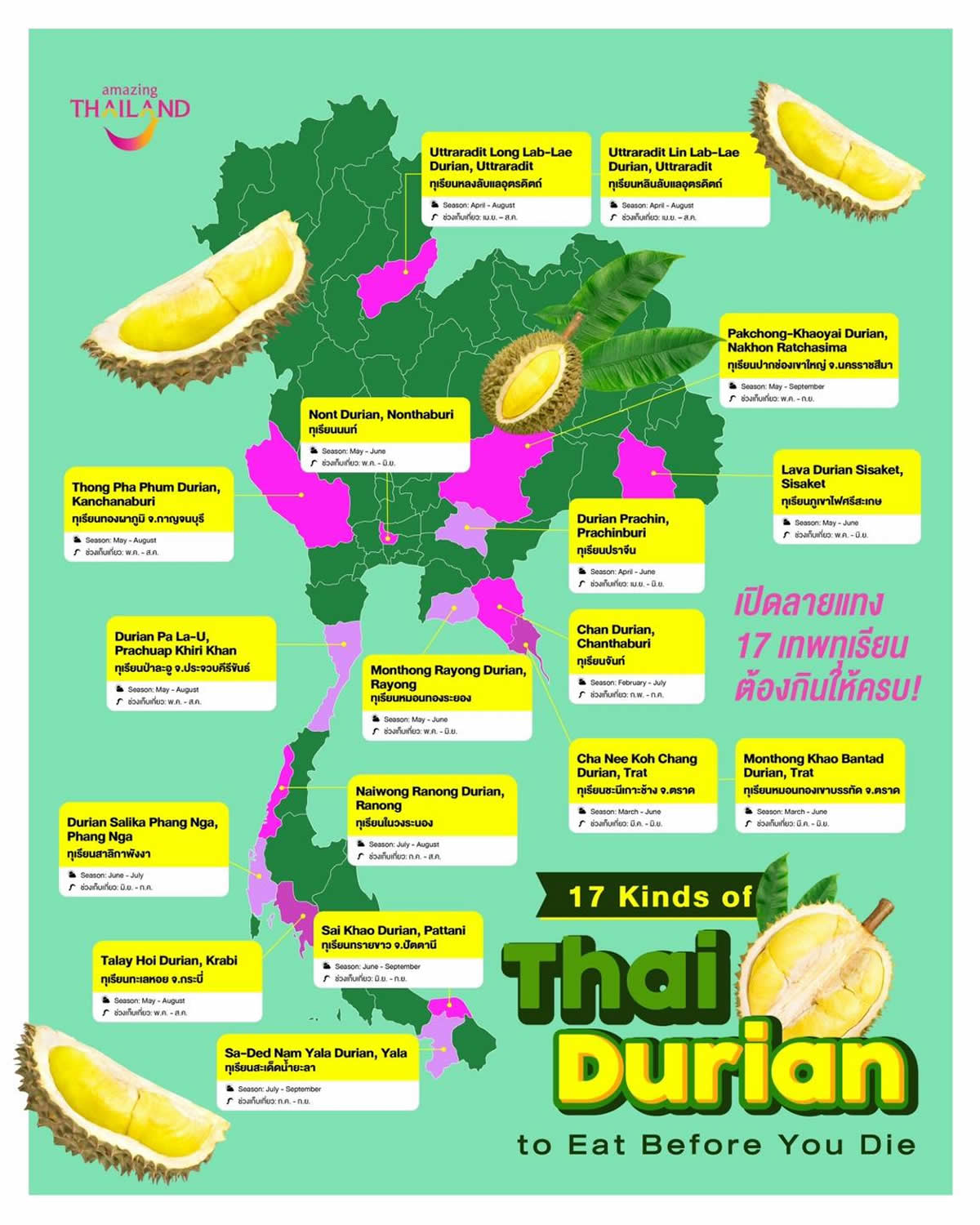 そんなドリアンはタイに17種あり、タイ政府観光庁は「死ぬ前に食べたいタイのドリアン」として紹介しています。