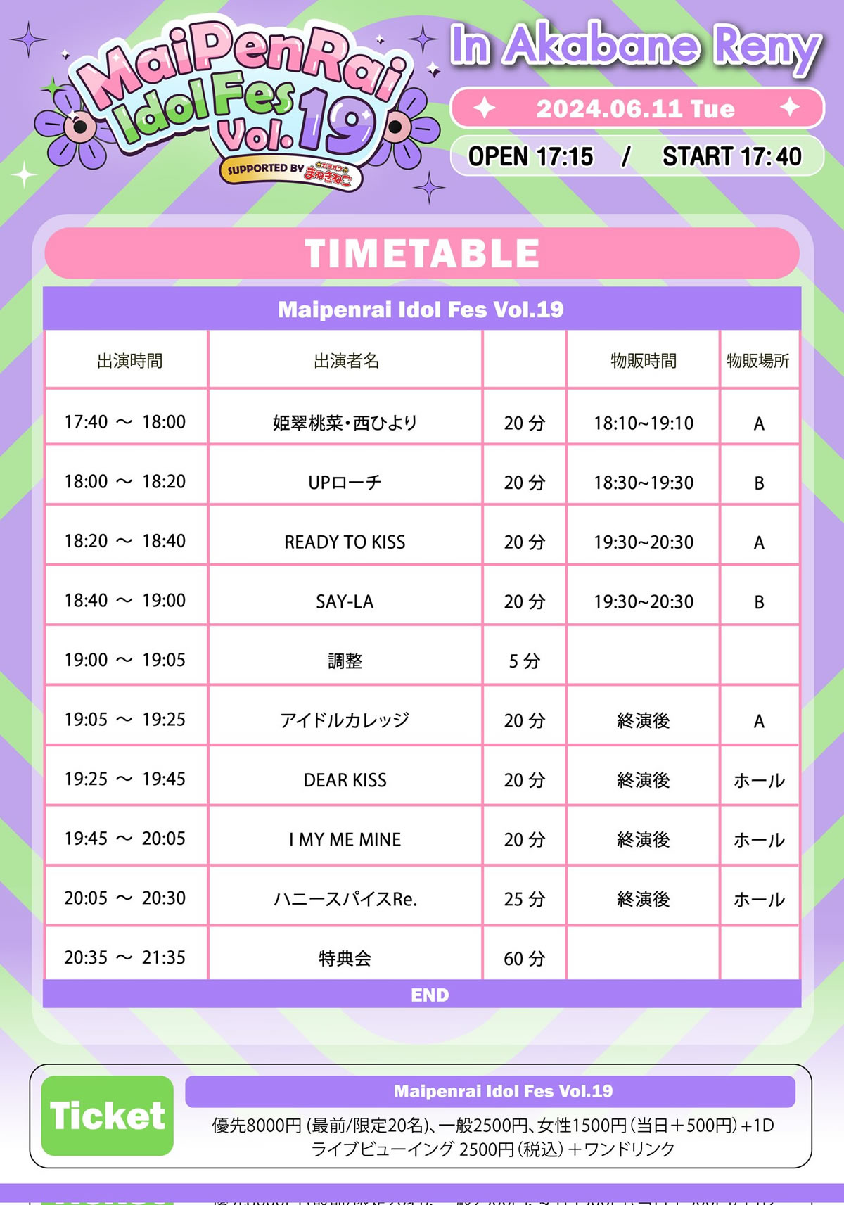 出演は姫翠桃菜・西ひより、UPローチ、READY TO KISS、SAY-LA、アイドルカレッジ、DEAR KISS、I MY ME MINE、ハニースパイスRe.。