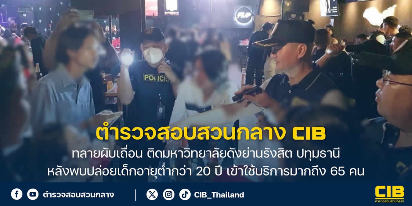 中央捜査局 (CIB) は、パトゥムターニー県ランシット地区の有名な大学に隣接する違法なナイトクラブを摘発し、20歳未満の若者65人が利用していたことを確認しました。