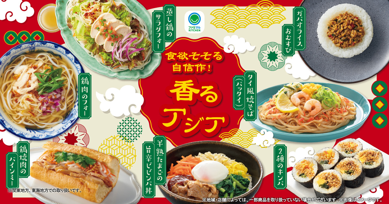 日本全国のファミリーマート約16,300店では、タイ、ベトナム、韓国のアジアングルメが大集合した食欲そそる自信作!「香るアジア」フェアが、2024年6月18日(火)から開催されます。