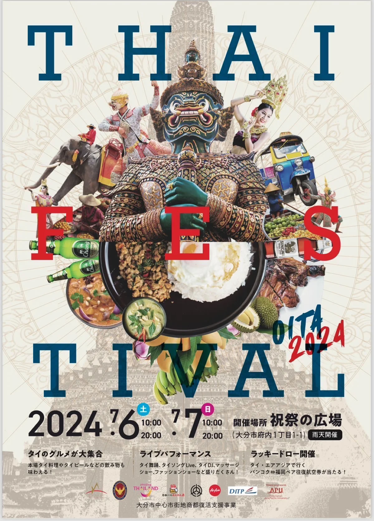 2024年7月6日(土)7日(日)に大分県大分市のお部屋ラボ祝祭の広場(大分駅から徒歩3分)で「タイフェスティバル大分2024」が開催されます。