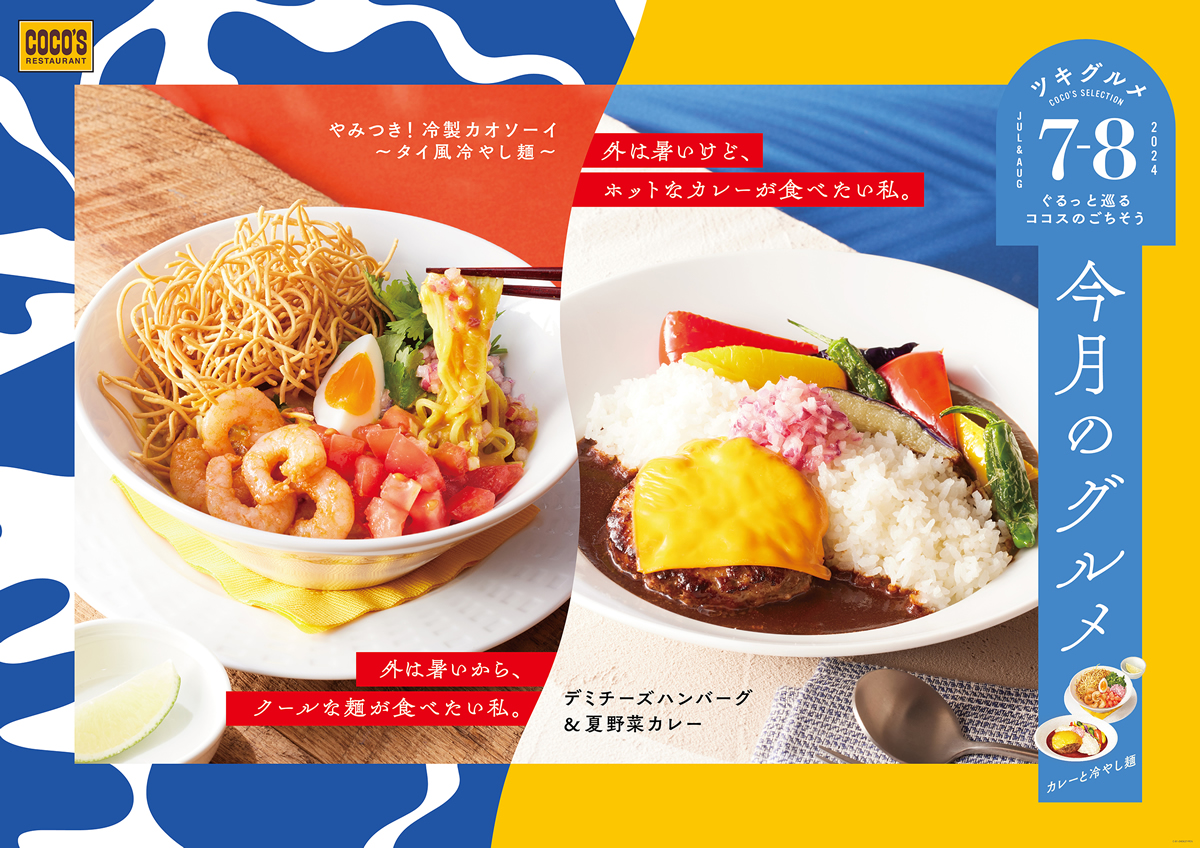 日本全国に展開するファミリーレストラン「ココス」では2024年6月27日(木)より、「今月のグルメ~7・8月~」を開催。タイの北部・チェンマイで親しまれている“カオソーイ”を冷製にアレンジした「やみつき!冷製カオソーイ~タイ風冷やし麺~」<1,080円(税込1,188円)>などを販売します。