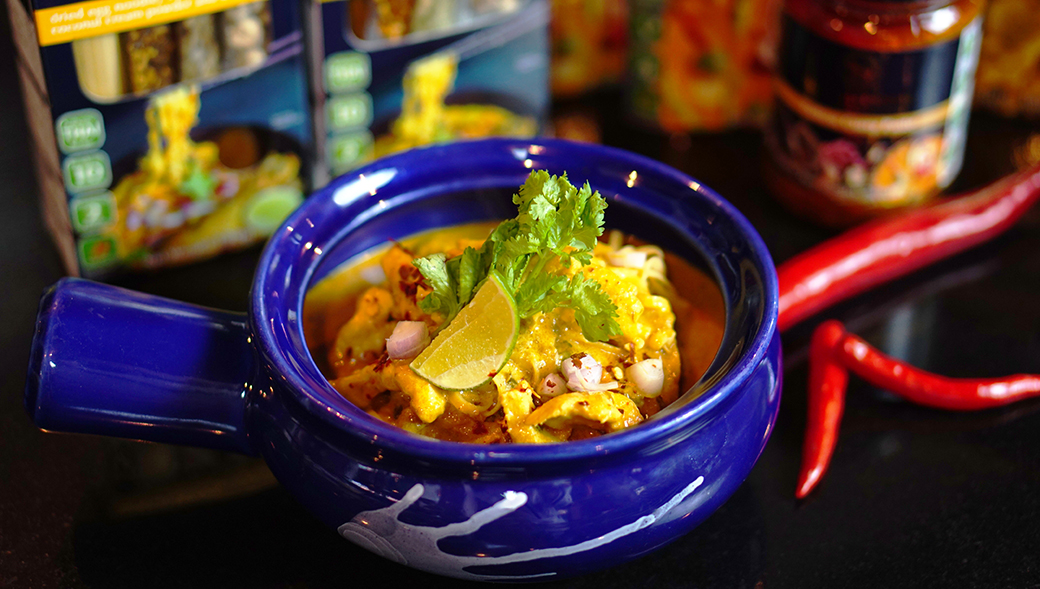 ココナッツミルクのコクと香り豊かなカレーベースのスープを組み合わせたこの深い味わいのスープは、今やチェンマイの代名詞となっています。